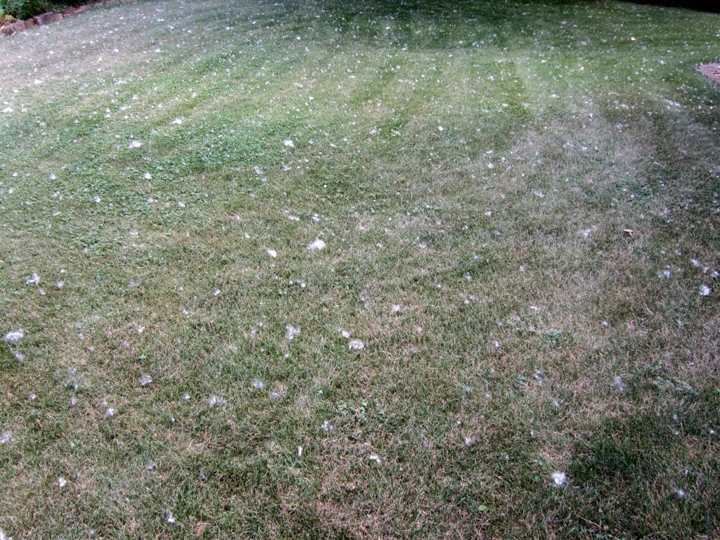 And yet during all that, it SNOWED! Well, it sure looked like it. The lakeside cottonwoods have been a little late spreading their joy this year – but on the hottest, most miserable day, an on-shore breeze kept blowing globs of SNOW . . . errr, cotton . . . up the hill until it had turned our backyard white:
