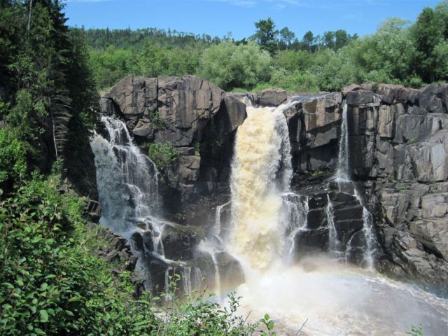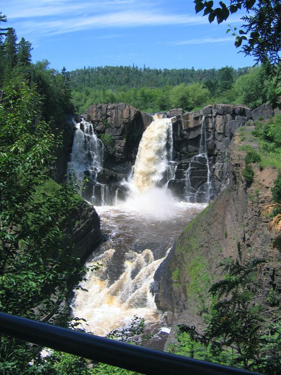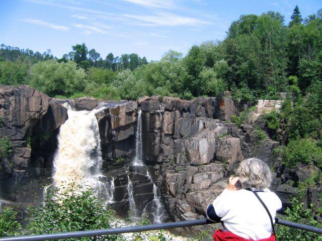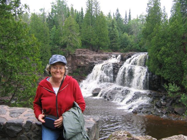 The girls head south again – stopping at Cross Creek (the cross, logically enough – there’s a long story to that, something about Father Baragras with a canoe full of people not heeding satellite storm warnings some time in the 180o’s (as I recall)) and Gooseberry Falls State Park (again, closed by the state, but Rita got in for her requisite photos):