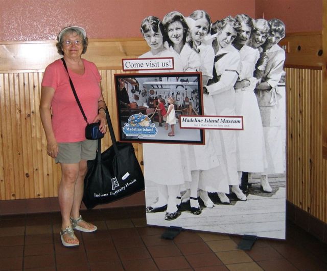 [Above: Rita at Sheboygan Beach; the supervisor on the Sheboygan boardwalk. Both are famous in song and story as final answers in the “Where in the World is Ruthie?” ongoing contest.]