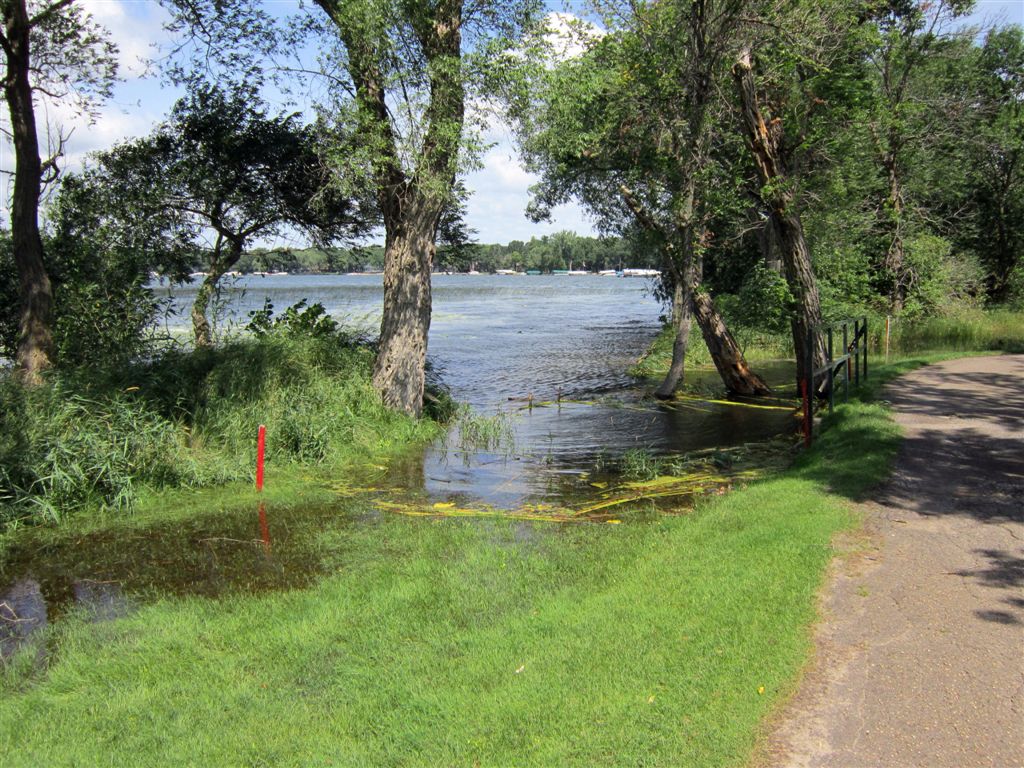 This was going to be a report on Resorters Golf Tournament week. It will include that – but it has otherwise been overtaken by events. Memories (and we suspect, records) indicate that lakes in our area have never been this high. This has not been a one storm, or one season’s phenomenon – it began with the snows of last fall, through the winter, the wet, cold spring, and the raging thunderstorms of summer. The water tables are maxing out – meaning in many areas where there is standing water, there is no place for it to go. The climate models are proving correct – the South is becoming hotter and drier, and it is becoming wetter, warmer, and more humid in our neck of the woods. People don’t usually have to sand bag around lakes – it is happening this summer. This will be an ongoing article as “stuff” keeps coming in from stringers in the field.