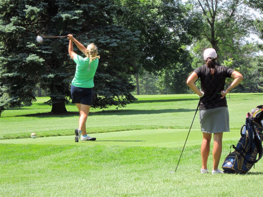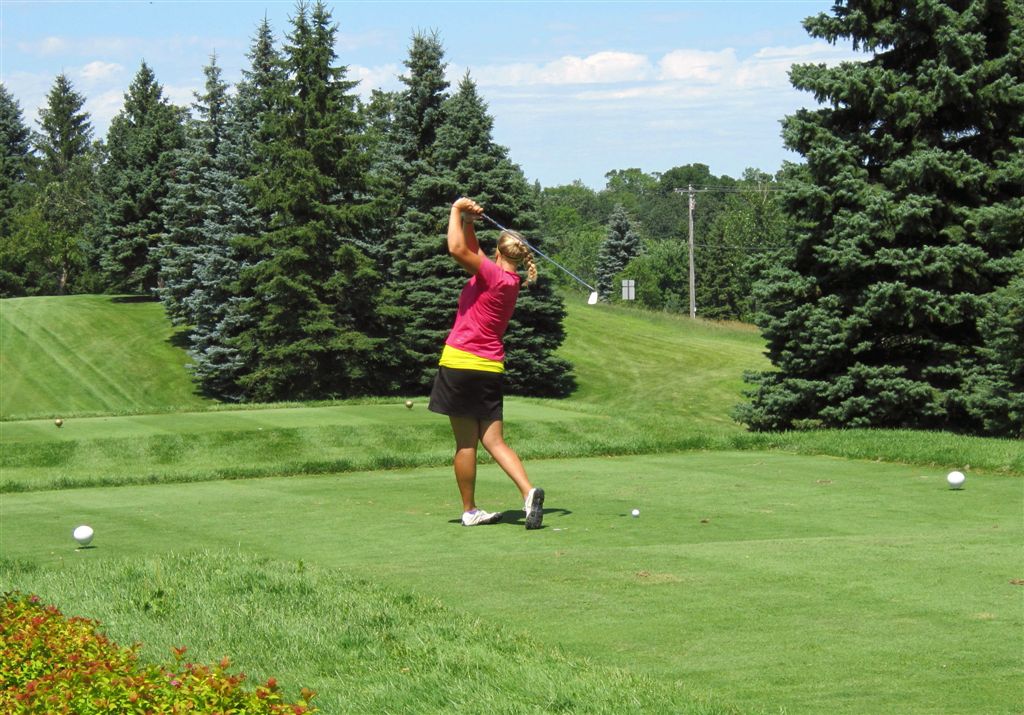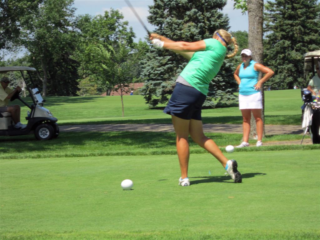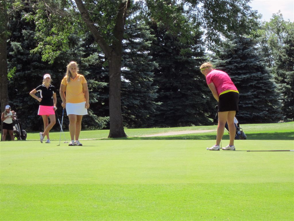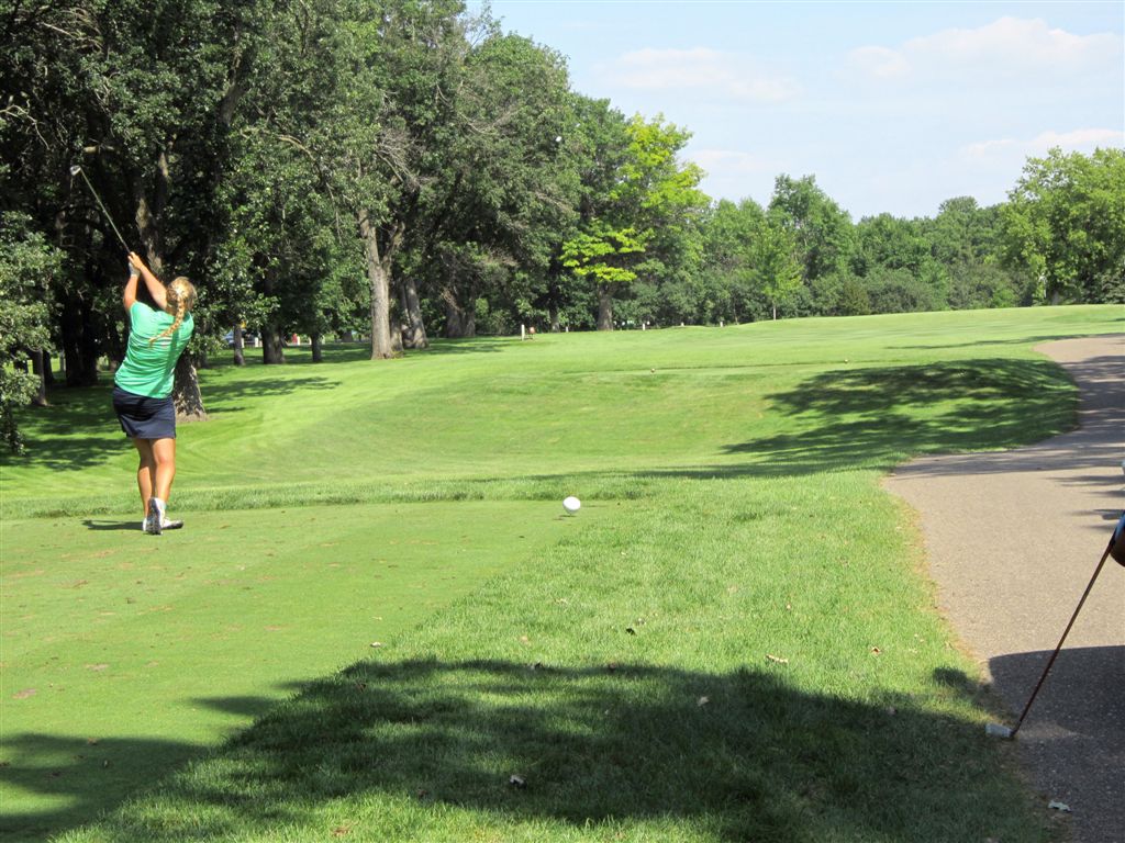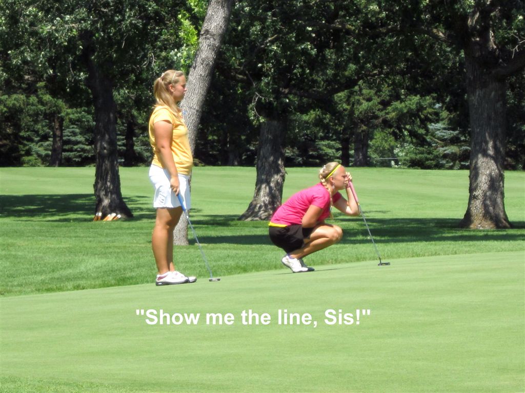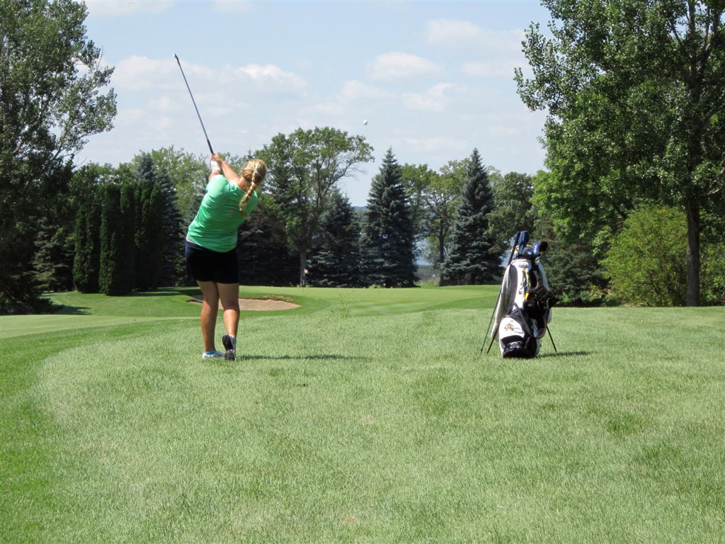 We had some interesting match-ups yesterday – Alaska cruise partners and fellow AGCers, Crazy Dave and Mary Owen, and Don and Berle Waldeland have grandsons playing in the same flight. And the Owens’ grandson, Danny, was playing Tom Lehman’s son, Tom. Danny pulled off a close 2 – 1 victory – we maintained a healthy neutrality as friends of the grandparents on both sides. The Waldeland’s grandson, Eric, also won yesterday which sets up the possibility of Danny and Eric meeting for the flight championship (I believe?). Also of interest yesterday was another meeting of Alexandria’s Leland sisters in the championship flight. They are teammates at Augustana – Molly will be a senior and Maggie will be be a sophomore.