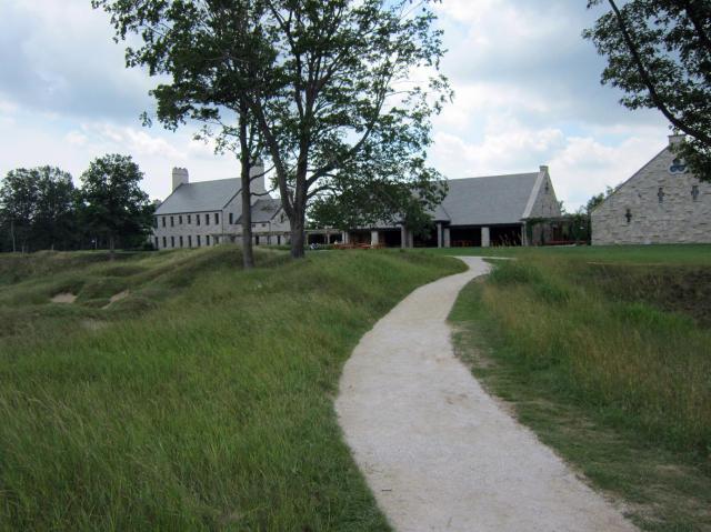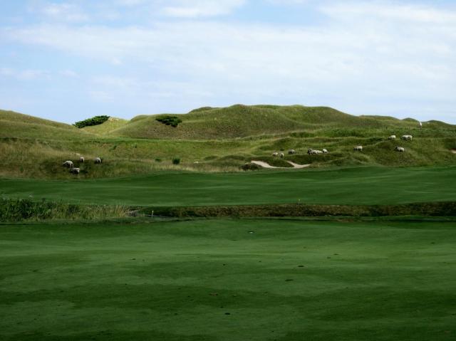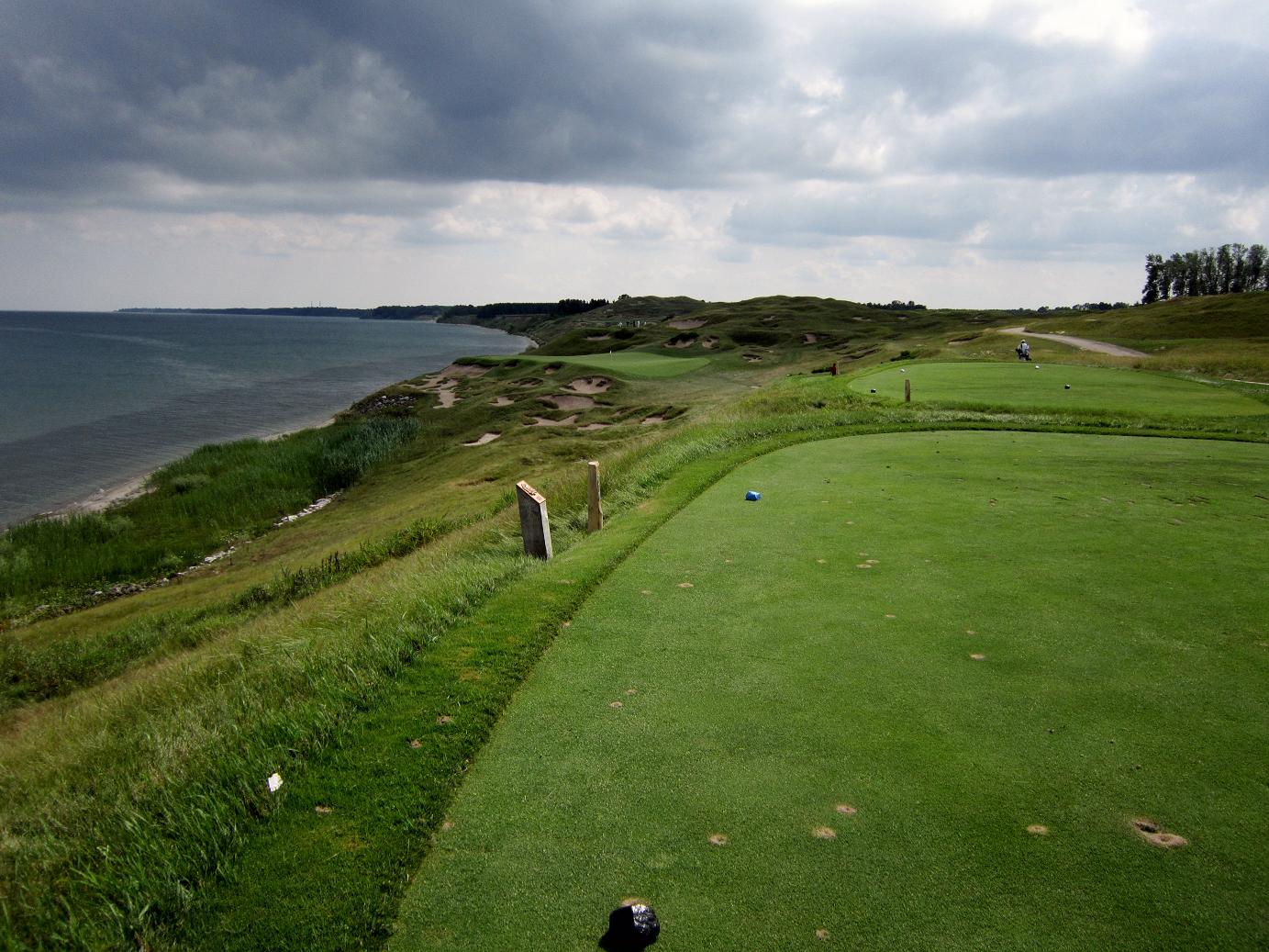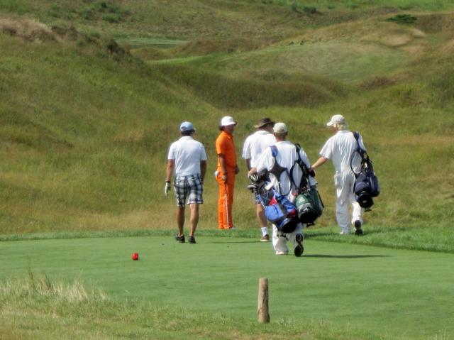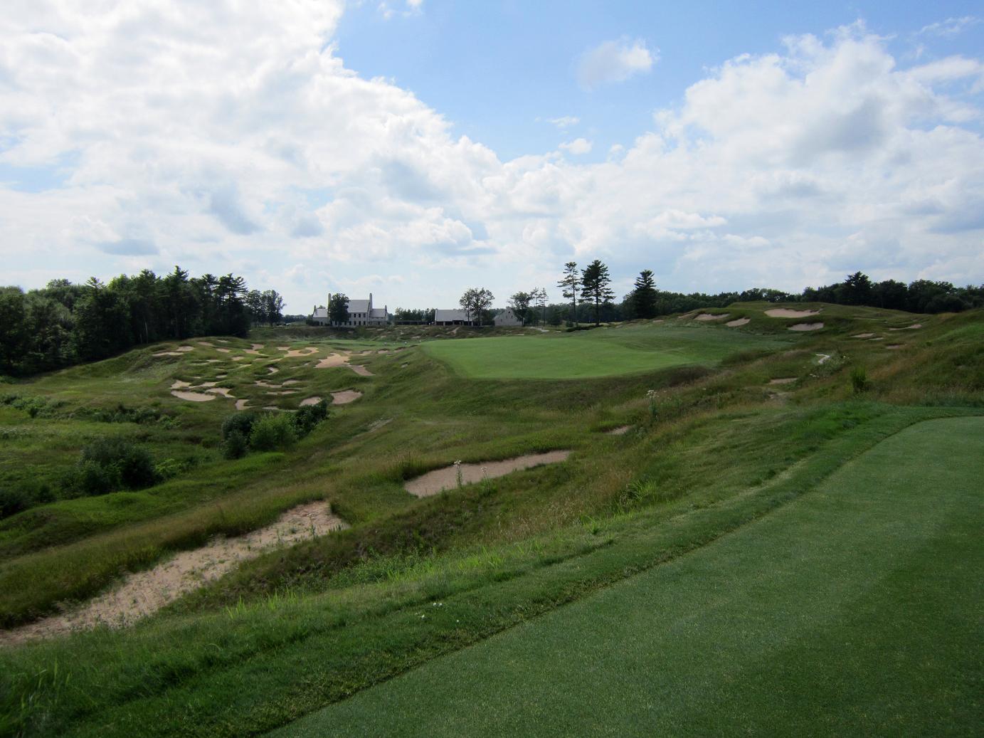 Then it was on to Kohler’s Whistling Straits Golf Club, just north of Sheboygan, and about 15 miles straight east from our camp. Very understated entry with no preliminary signs. We discovered you could get a tour – so we did. The green fees are $350, you must have a caddy for $60, and a recommended caddy tip is at least $35. Economy, schmeconomy – the course is booked solid every day. Absolutely beautiful setting – but it doesn’t look like there’s anyplace safe to hit a golf ball. Staff say most players come into the clubhouse after 9 holes to buy more balls. A highlight I wasn’t aware of – the course has 30 free-roaming sheep, and every night they return on their own to their on-course pen.