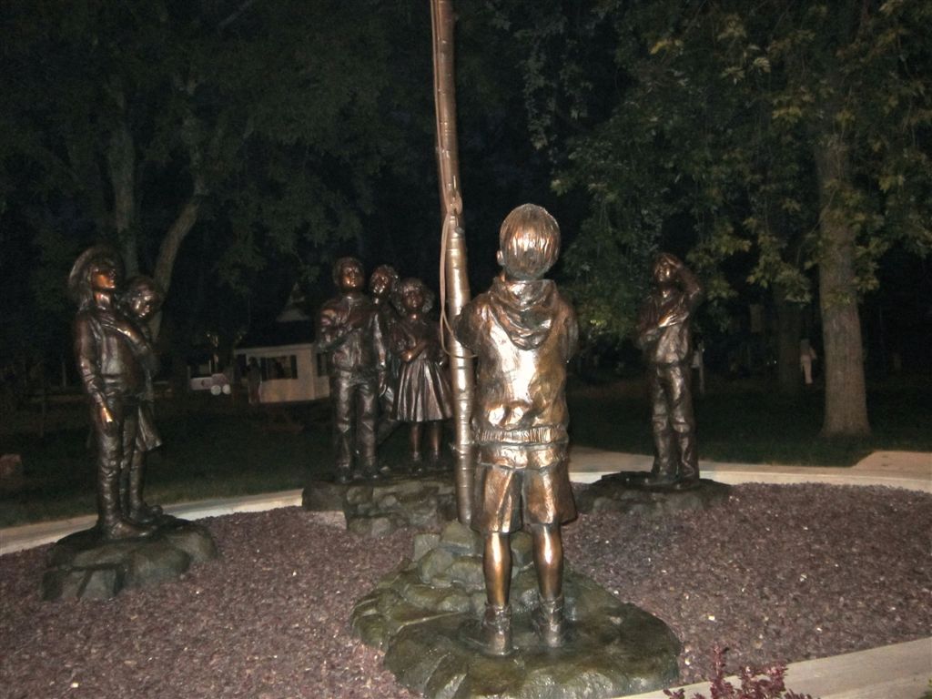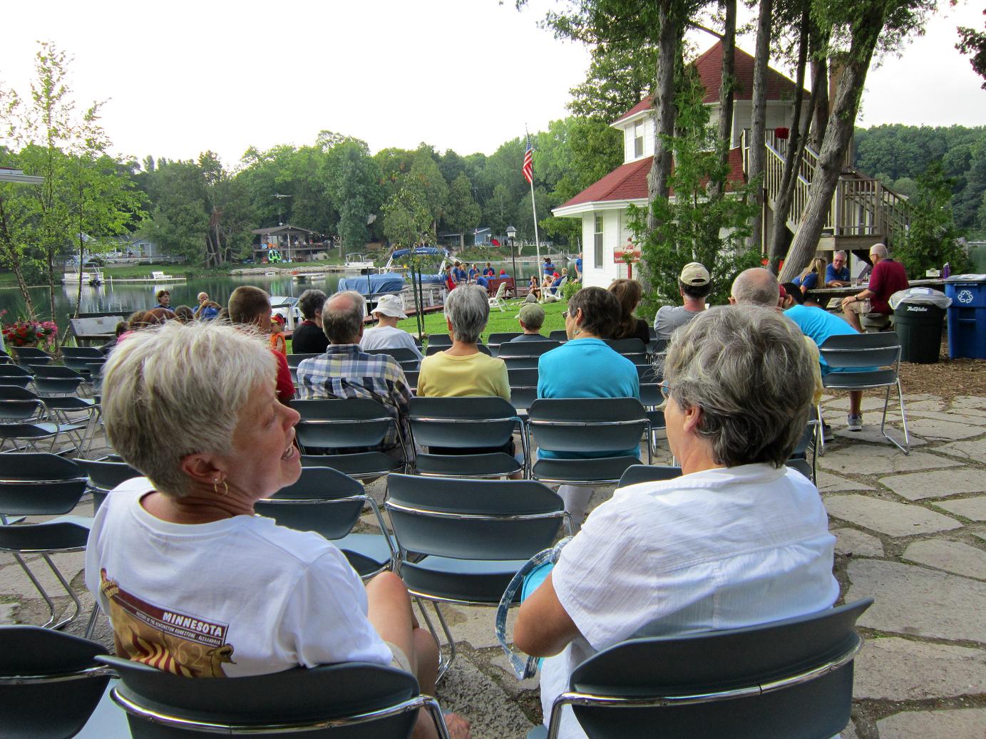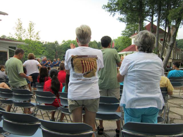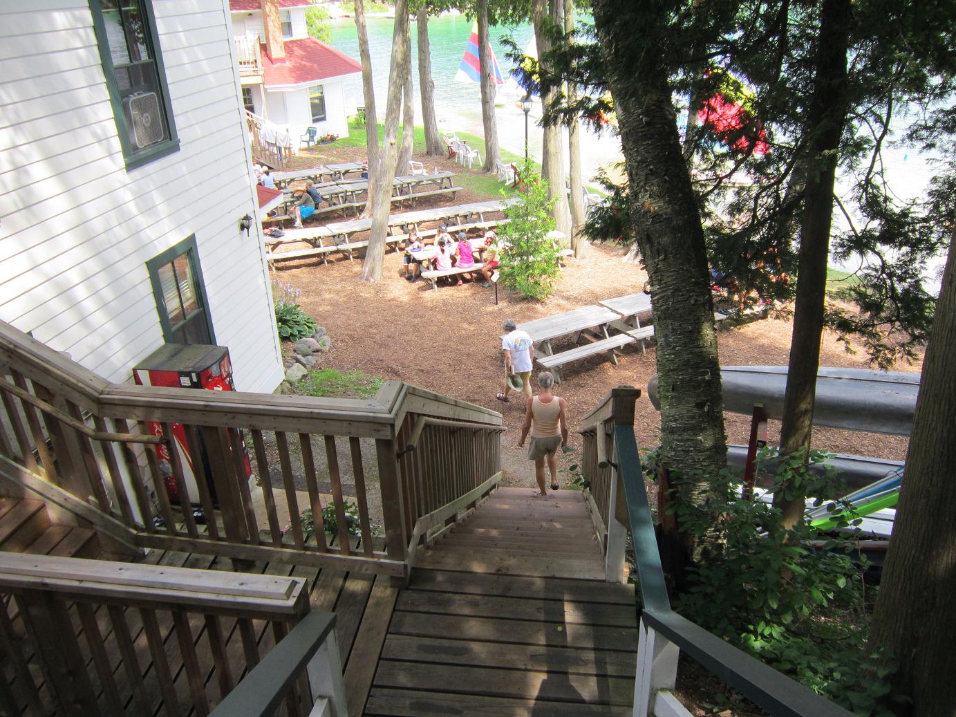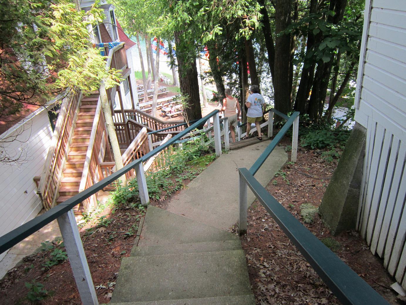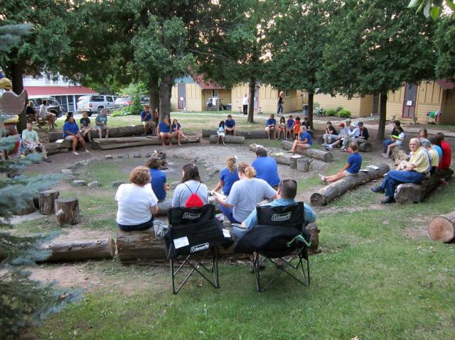 OK, we’re beginning still at Day 2 of the vacation – arriving at camp that evening. The whole fam damily was there as we gathered on the patio for introductions of staff, and campers, and any one who wondered through the neighborhood. Then we all went up top – 60-some steps as I recall – to the dwellings and an evening campfire. For us, Rappaport was home for the week. It housed The Biddies; Rita’s daughter, Beth, and son-in-law, Chris; Jami and Danny; and me. The grandson was off on his own in a man-cave! And what’s camp without some campfire songs?