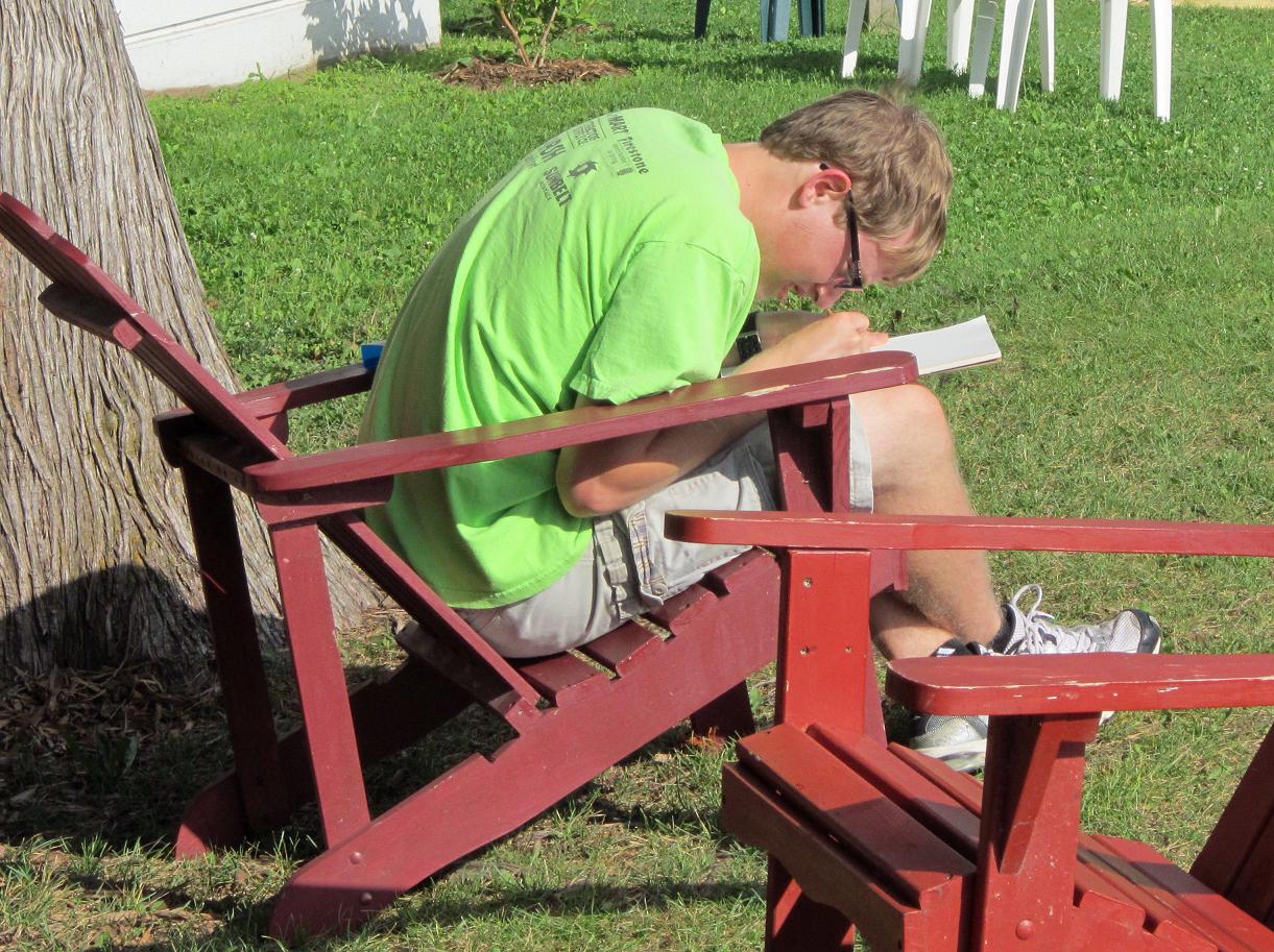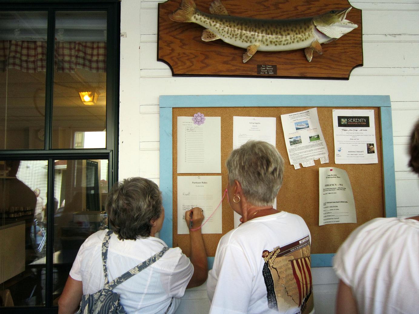 [The Biddies sign up for camp activities: crafts, horseshoes, archery, sailing, canoeing, pontooning, shopping . . .]
