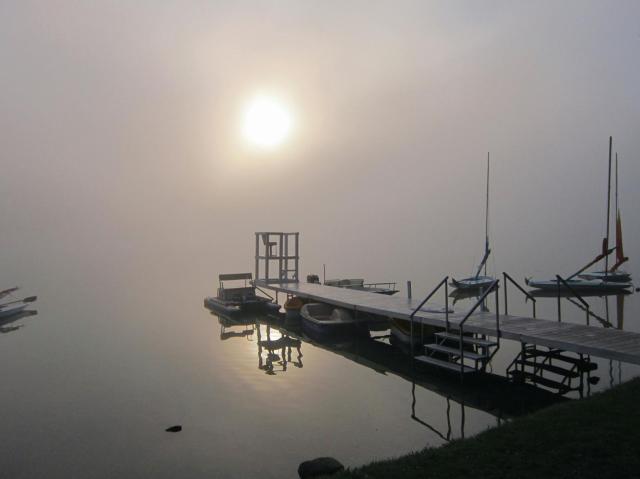 [Award winning photograph! OK, not. First morning at camp, 3rd day of vacation. Camp Brosius waterfront on Elkhart Lake.]