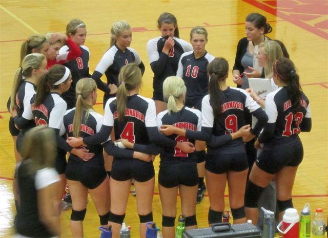 The volleyball team opened its home season on Tuesday hosting the dreaded Otters from Fergus Falls. [Editor’s note: The staff photographer covered a home girls soccer game the same night – results and photos will be posted on this site when available.]
