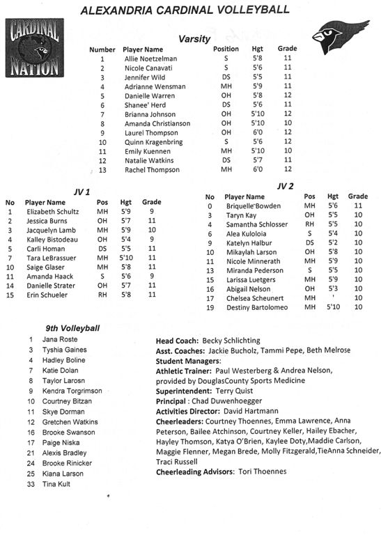 The Cards had their mojo back at the beginning of the deciding game. They built an early 8-4 lead, but then . . . Fergus, to their credit, came back to win it. It’s especially tough because we’ve always held their fans among the worst. I think we had the better team – it’s just a matter of keeping focused. We hope that will develop with experience. We have some talent – and we like it that Emily Kuennen (No. 11) and Amanda Christianson (No. 8)are both 5’10” and only sophomores. Do girls grow anymore after 10th grade?