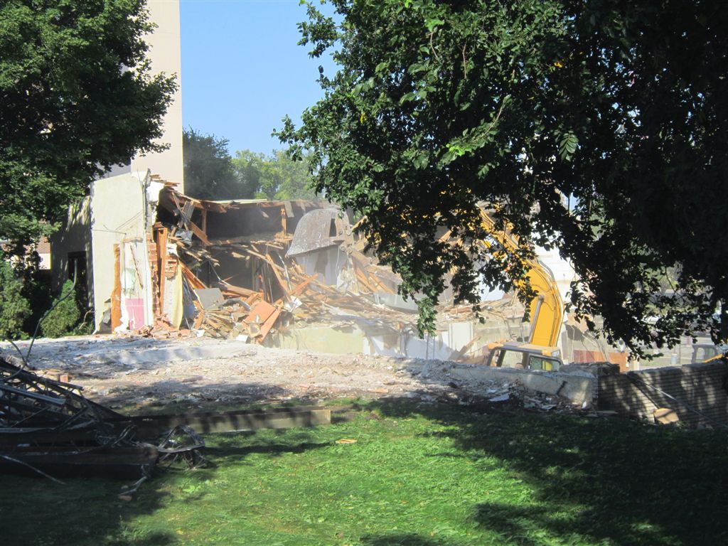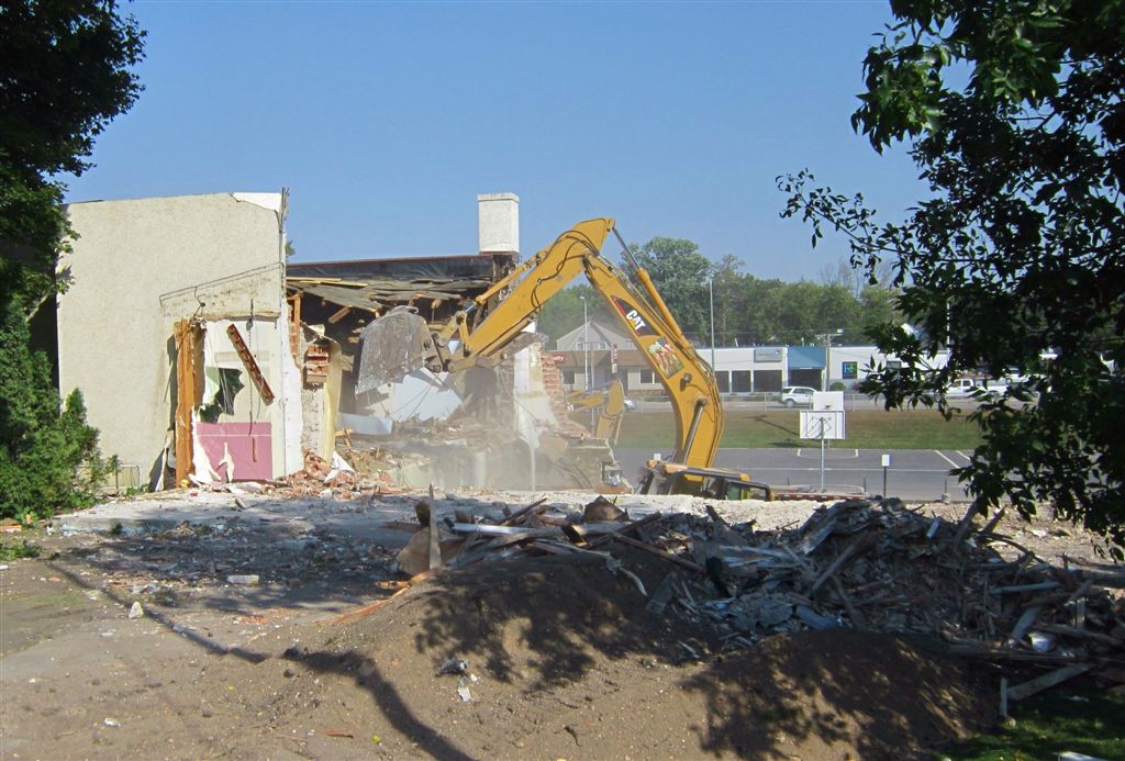 Before we get to the “Stomp,” a little local news. Unbeknownst to me, and apparently most people, the old American Legion was on the demolition block this week. By pure happenstance, we were driving by as it was happening last Monday so we circled the block and got the following photos, which subsequently went “viral” on local e-mail and Facebook. 😉
