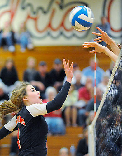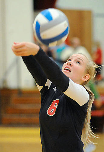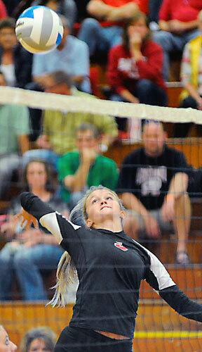 And from Echo Press, in descending order, Shanee’ Herd, 5’6″ junior libero; Danielle Warren, 5’8″ senior outside hitter (yup, at 5’8″ 😉 ); and Adrianne Wensman, 5’9″ junior middle hitter: