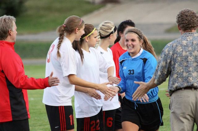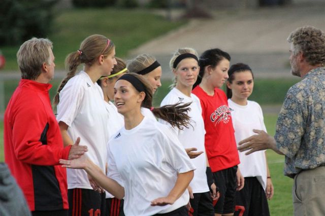 The staff photographer covered the 1-1 home tie with Moorhead and the 2-1 win at St. Cloud Apollo (the team finished the week with a 1-0 loss at Fergus). Sarah “Baby Bruiser” Bruzek was named Central Lakes Conference performer of the week, having given up only three goals in five games. We begin with player introductions for the Moorhead game – we will amend this issue to include player names as they are submitted. Yup, haven’t been able to actually make a game yet. First, the Spuds: