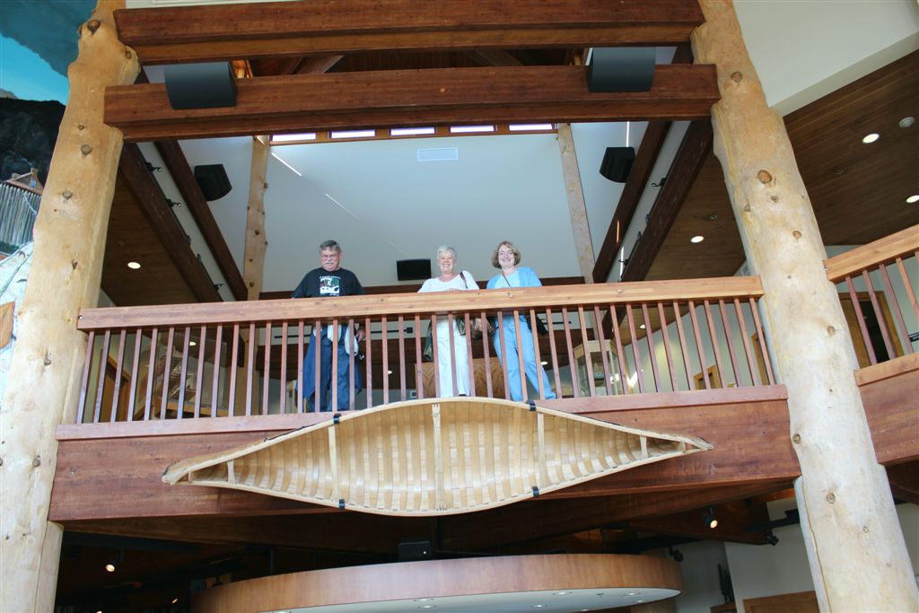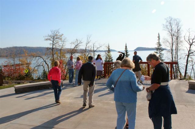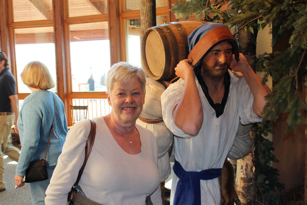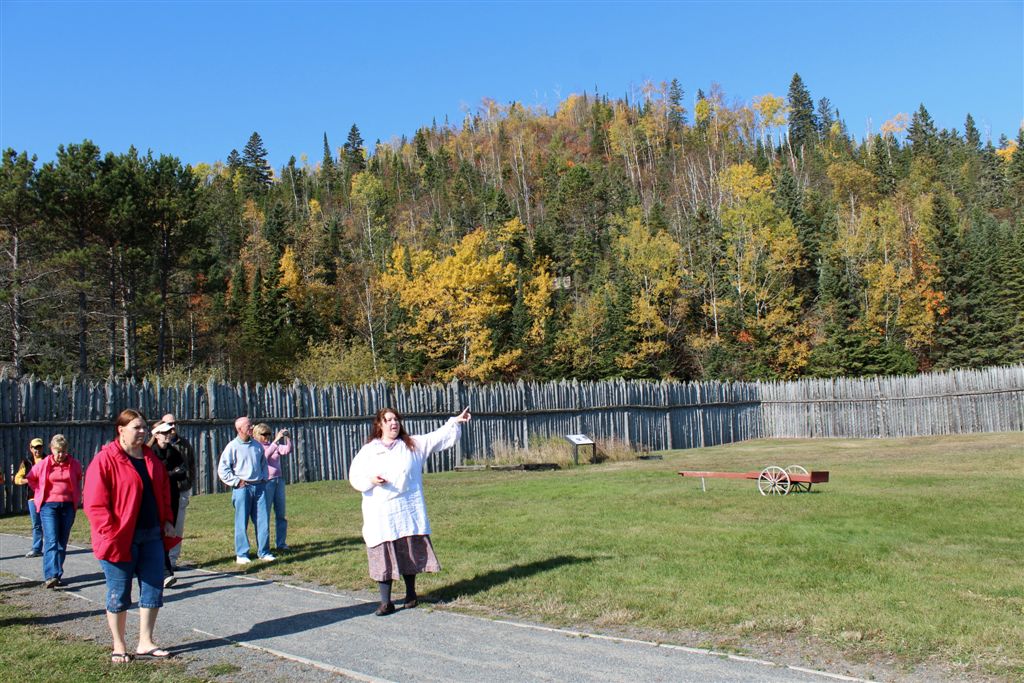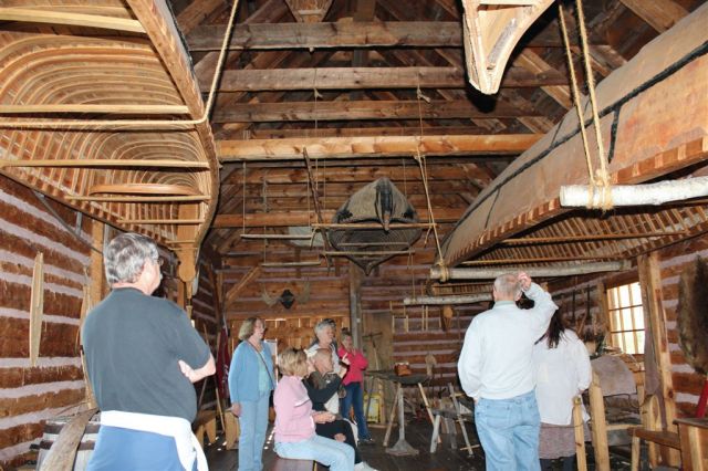 It’s still morning of day 2 – we’re back to where the previous day ended and where the current day began – the Grand Portage National Monument Heritage Center. After a brief perusal of the center, we went out to take the tour. Lisa led the tour and ladled delicious tidbits on the history of the place. Grand Portage in its heyday (1790’s) was a major international trade center – furs from all over northern North America came here (well, not by their original wearers, but were canoed and portaged in by the trappers) for transportation through the Great Lakes to Montreal and then on to Europe.