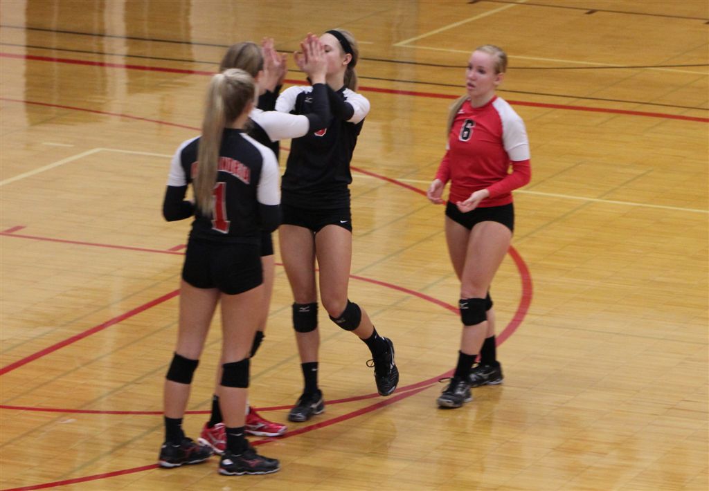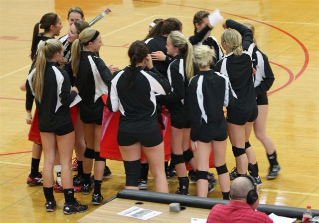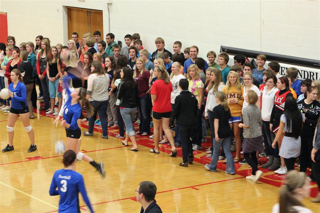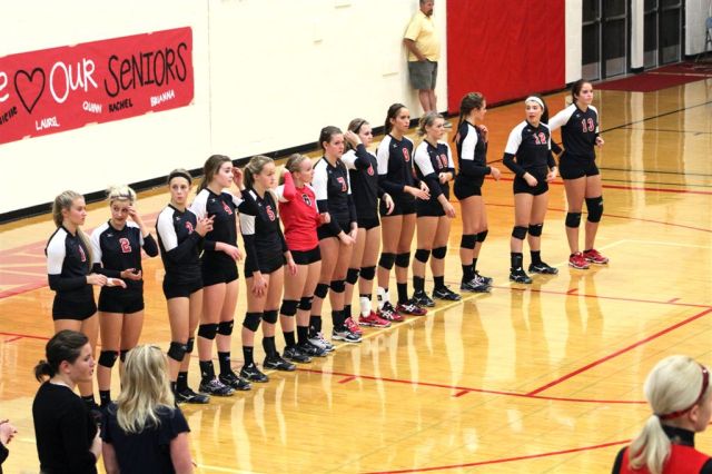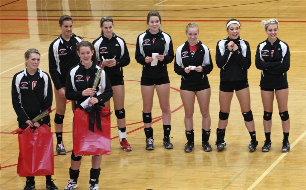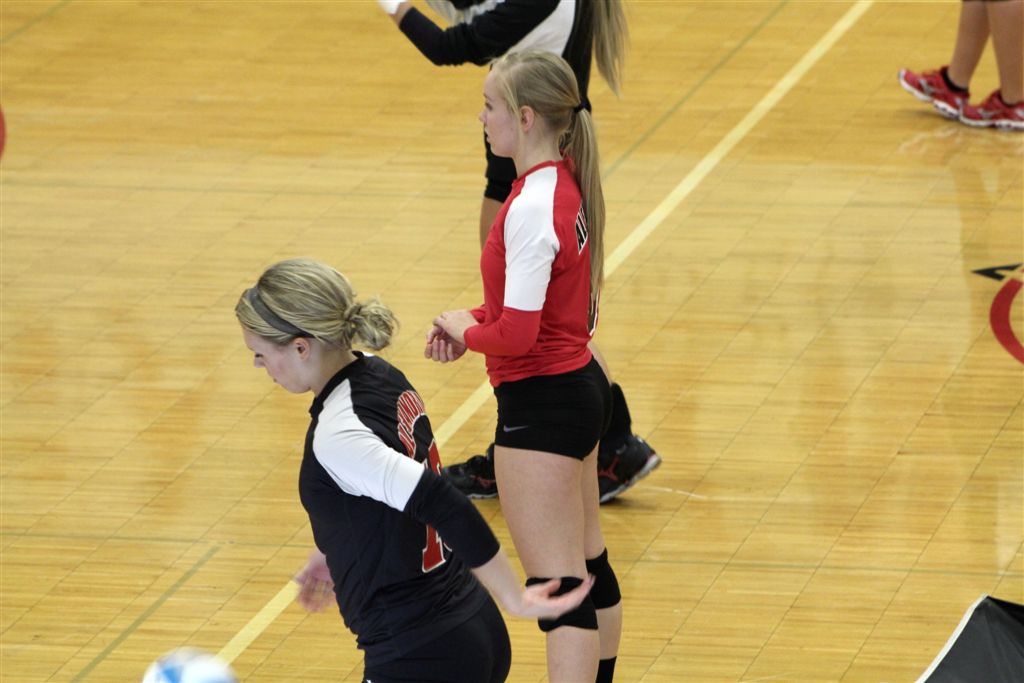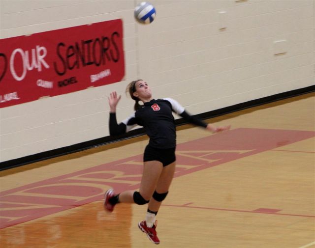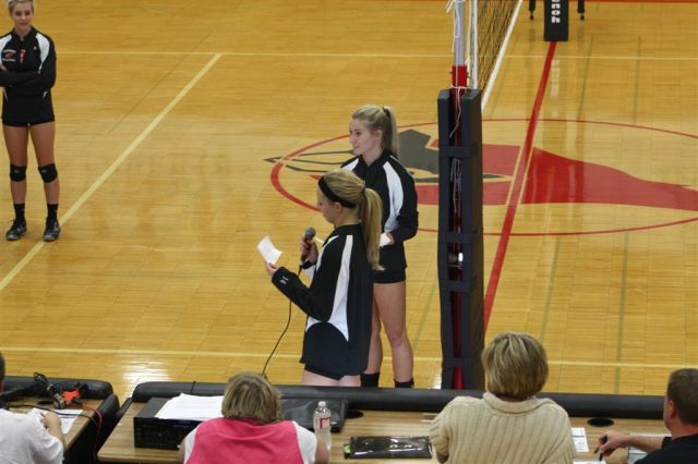 OK, we’ve been a tad distracted lately. Between trips, company, classes, music, a school bond referendum, and trying to sell the heritage house, we haven’t made it to a lot of sports events this fall. I’m sorry I didn’t make a single girls soccer game – fortunately, the staff photographer covered them all, and we will publish some of his work by later column. I did make it to the Sartell volleyball game on the 11th. Little did I know until I got there, it was also senior night. So I missed most of that, too. The school’s going to pull my press pass. Anyway, this was my first game with the “staff photographer camera” at an indoor event. I will continue to work at it.