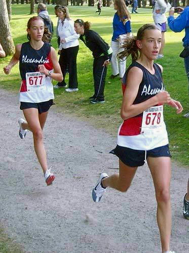 In still other events, the cross country team was competing in the conference championships today. The Cardinals probably had the Nos. 1, 2, and 3 ranked runners in the conference, and probably the section. Coach Mark Nelsen said he has coached for 30 years – and the three fastest runners he has ever coached are on this team: Senior Jamie Piepenberg, and 8th-grade twins, Megan and Bethany Hasz (Echo photos):