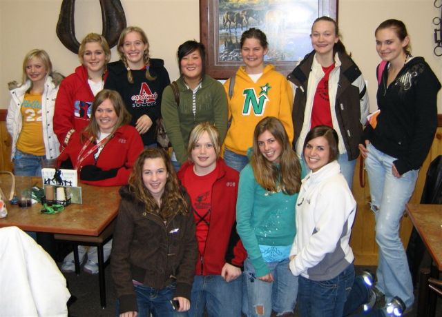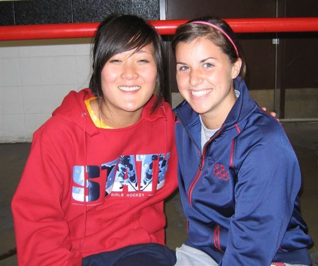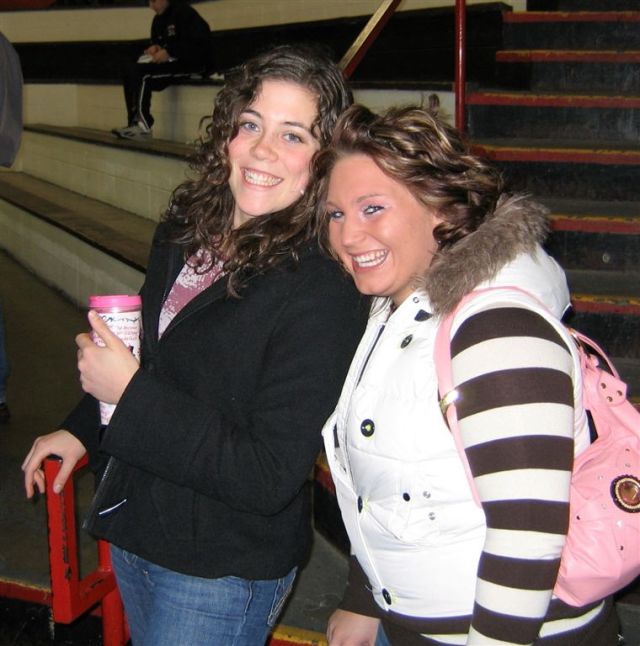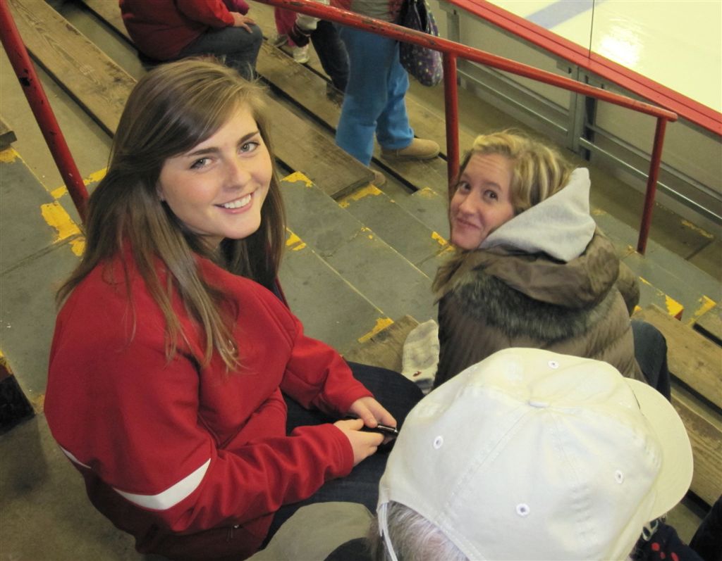 The preceding explains the proceeding. As a kid, I played pick-up hockey or batted a puck around maybe ten times a winter. There was no organized hockey – remember? I believe by the time I reached high school I could finally raise the puck off the ice. Forty years later I watched junior high girls tuck wristers into the upper corners of the net. By the time I was a senior I thought I had a pretty respectable slap shot. After I saw 8th-grader Ashley Holmes blast a few from the blue line, I would have been ashamed to call mine a “slap shot.” So we watched and became Super Fans. This summer we’re sure our stalwarts tossed cabers and jogged through the logging trails with pianos on their backs. ‘Tis hockey, after all! Accordingly, the following is photographic retrospective – back to the beginning. Some of the photos are mine; many are stolen from mulitple sources or were thoughtfully “donated.” The photos will be displayed randomly – except for the beginning where we will feature this year’s sisters. Sisters appear to be invaluable to the success of hockey teams. Pay close attention – there will be a test at the end, a variety of 9 multiply choice, 9 true-false, and a 9-minute essay. That’s right: 9-9-9: