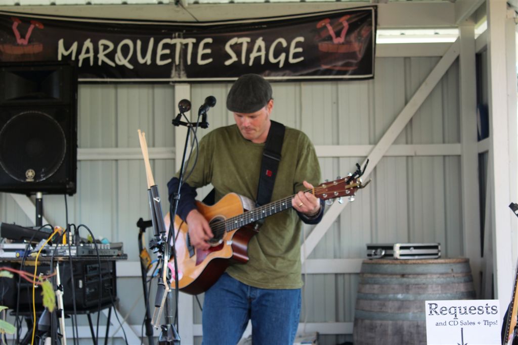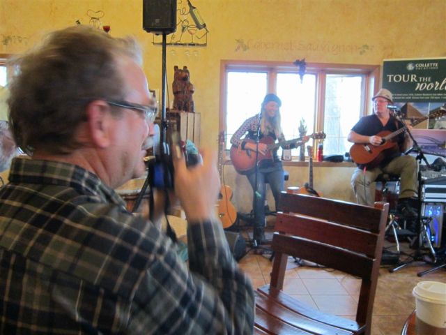 [Jeff James was at the winery. I made my first attempt at using the video feature of the new super-duper photojournalist professional camera. I noticed Jeff’s “menu” included a song titled “Zamboni.” I thought perfect for this blog! I asked Jeff if I could YouTube him on the song – he played it, I couldn’t figure out how the camera’s video feature worked! (I have included “Zamboni” by the Gear Daddies to show us all what I missed.) The instruction booklet for the camera is larger than the OED. I subsequently figured it out by trial and error and have included videos of Jeff doing “Folsom Prison Blues” and “The Times They Are A-Changin’.”]