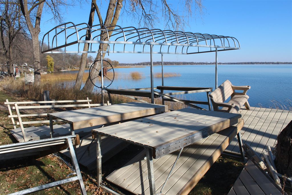 [For the uninitiated, this is how you store your dock and boat lift for the winter – so they don’t get crushed by lake ice. No Zebra mussels (yet)!]