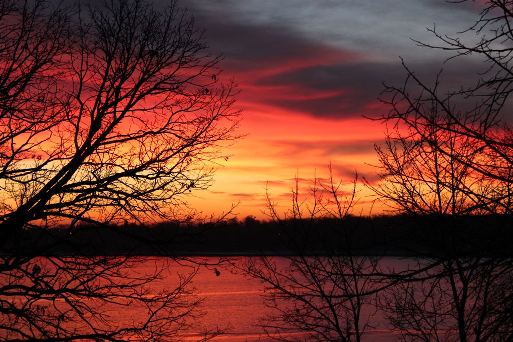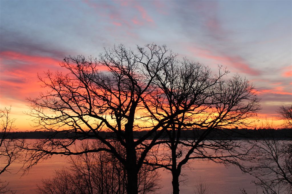 [A confused and schizophrenic Lake Darling can’t decide to freeze or not freeze. This Sunday morning we have more open water than we’ve had in over a week.]