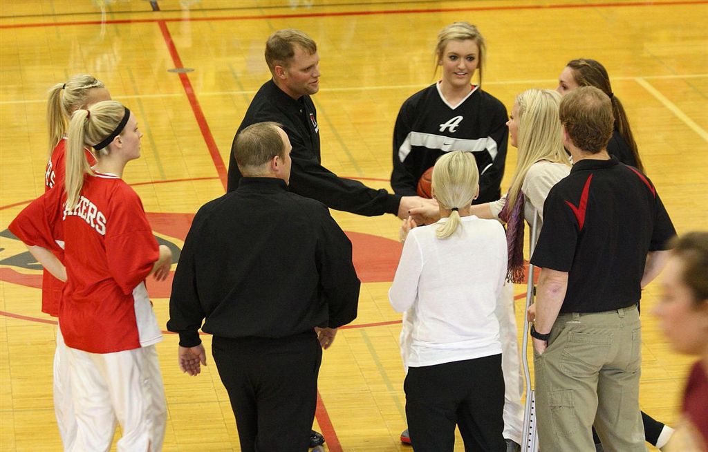 Part II, likely for now and the rest of the year, will feature the photos taken by the staff photographer on the other side of the court. As such, they will provide a different perspective on the the game, the perspective from . . . well, the other side of the court. His side provides better “access” to team huddles – I had to cede that to him based on seniority.
