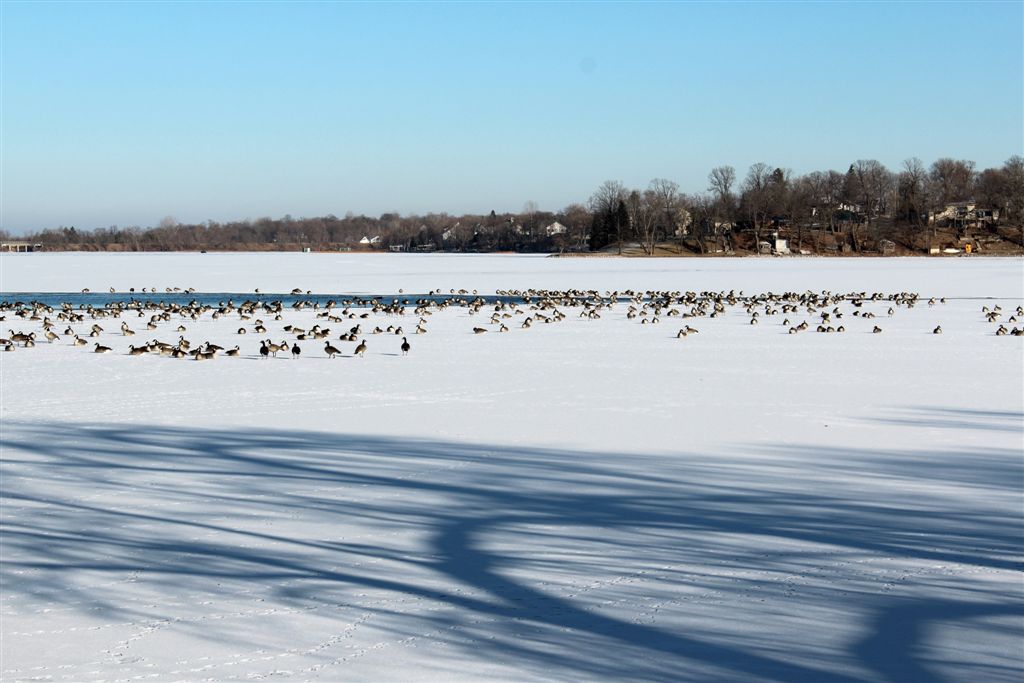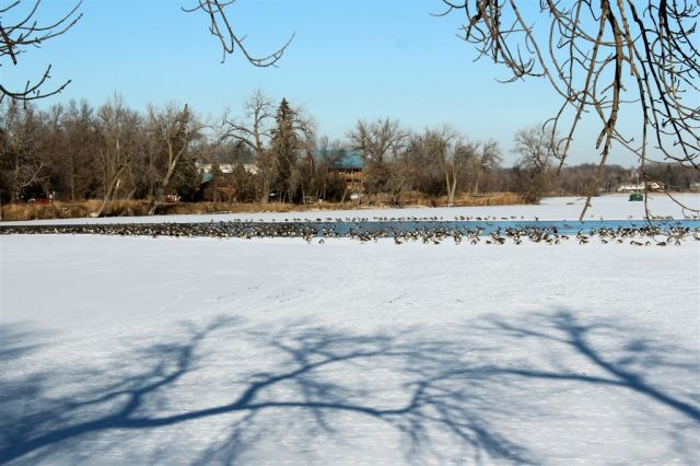 [The Cowdry-Taylor channel yesterday – with hundreds (?) of geese and ducks.]
