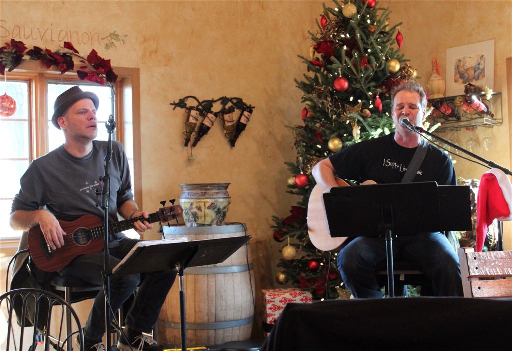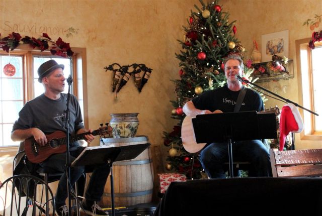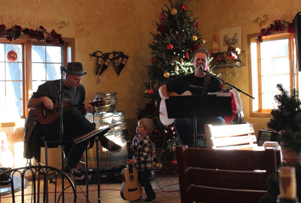 Then it was on to the winery, where Matt Veline was performing . . . well, with assists from several family members.