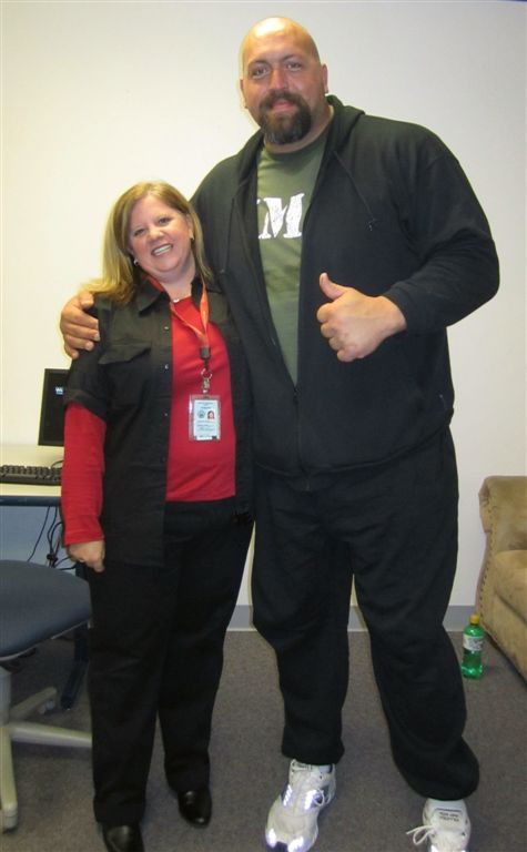 While you are waiting for me to get my traditional Christmas letter done and in the mail, which won’t happen until Friday, here is a picture of my daughter with WWE wrestling star “Big Event” (7 foot tall and 500 pounds) at a ConAgra Foods (Slim Jim’s) sponsored event in North the “green room” for the show. ~ Mark Brown (really big wheel at NOAA)