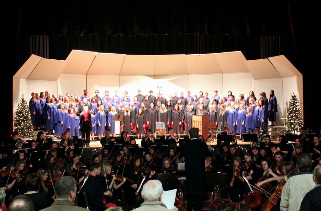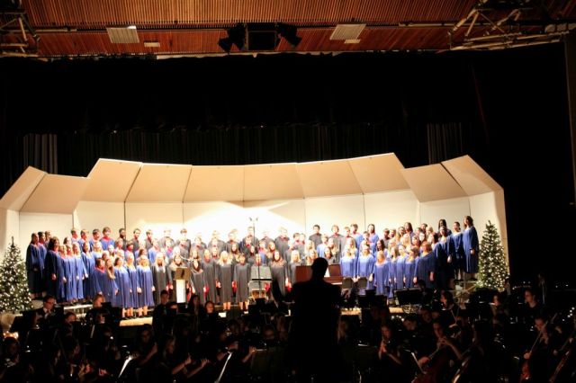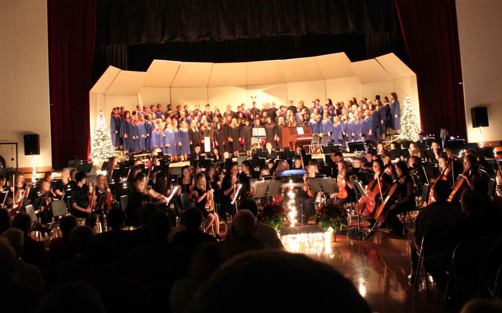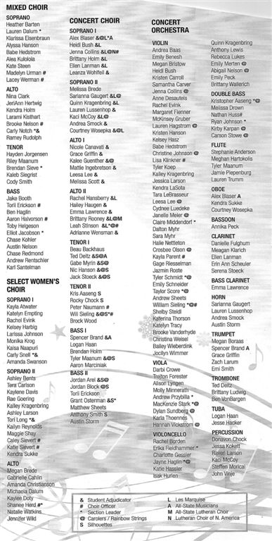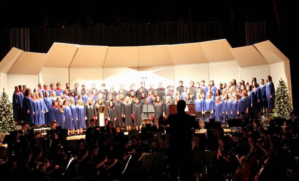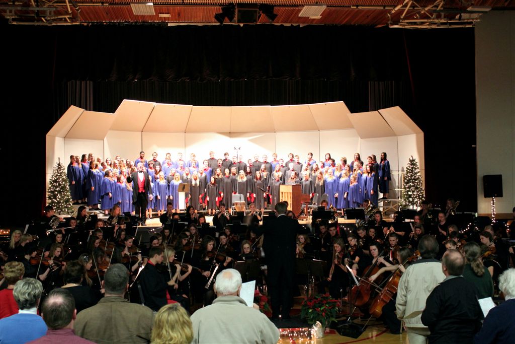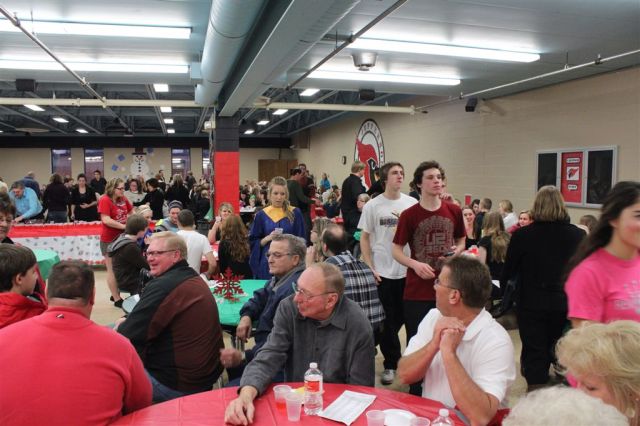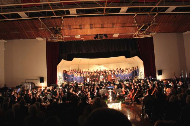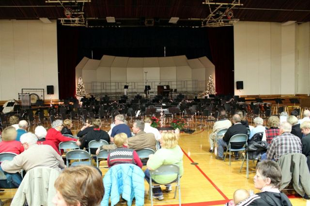 Choir director Steve Dietz and orchestra leader Brad Lambrecht once again led their musicians through a terrific show before a full-house of somewhat warm mostly older people. We are always amazed how they are able to herd (er . . . possibly “shepherd” would be a better choice) their performers through the confines of the high school gymnasium for the different numbers. As Class of ’65 principal, Wayne Elton, noted on the way out – about a third of the student body must be involved in the various bands, orchestras, and choirs, and yet they are somehow able to keep it all coordinated within limited space. And at a mere $6.00, it is, as we say around here, “Such a deal!”
