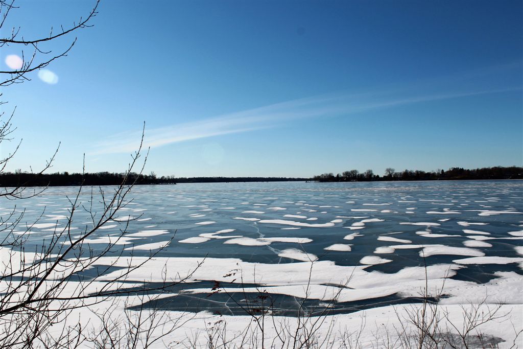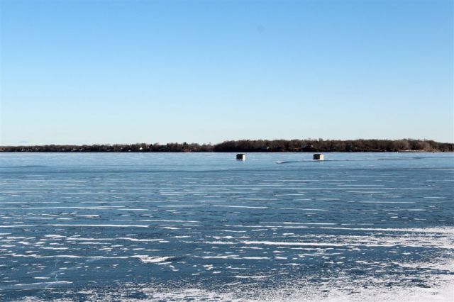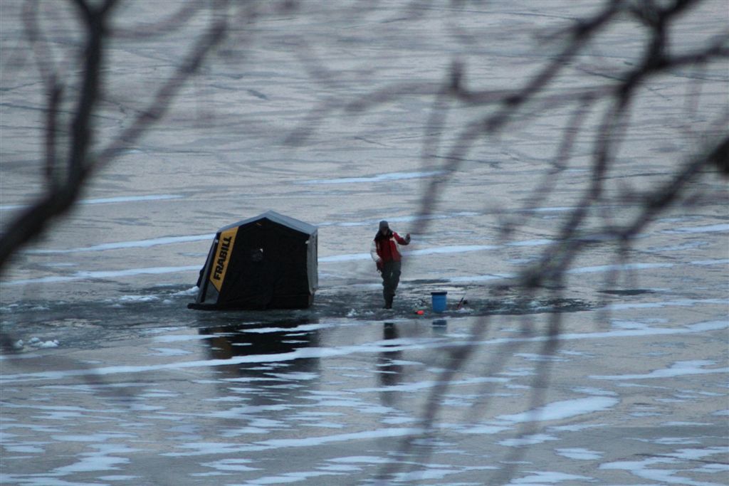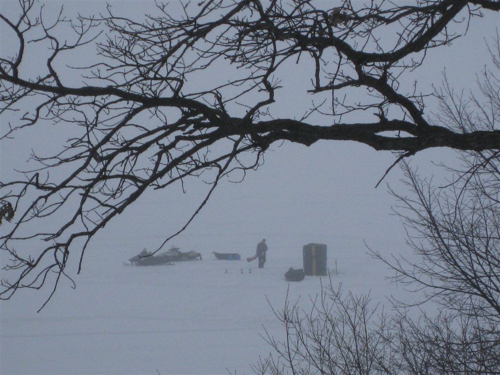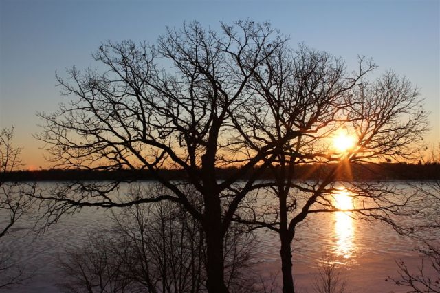 [As the sun sets over beautiful Lake Darling, we say good-bye to Christmas 2011. We may not have snow, but we have ice fishermen!]