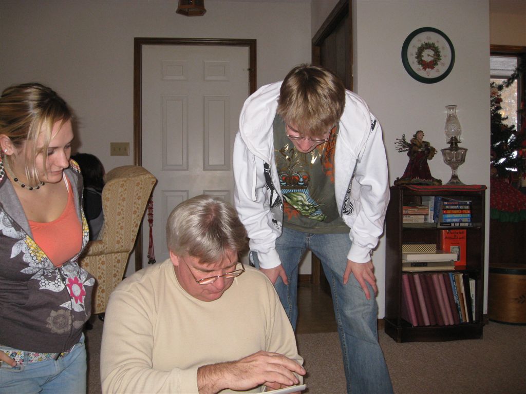 This (2008) was Mom’s last Christmas – we got her her preferred present of choice, a bottle of Ancient Age. Cam, Karen, Katy, and Michael all came up from Mounds View and had a good time going through boxes of old family photos.