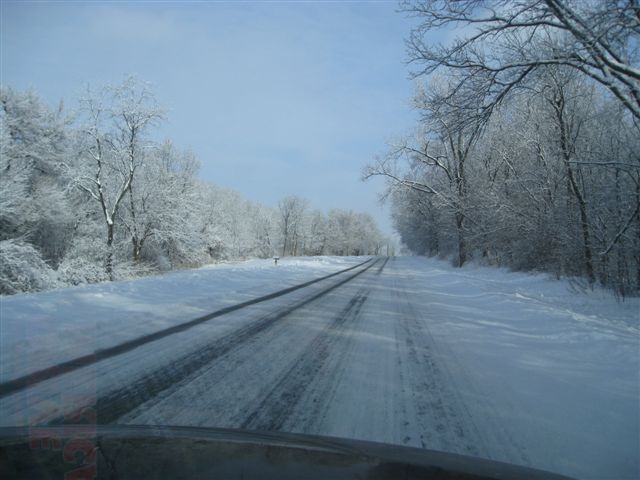 We drove through the dark at about 40 mph on a 70 mph roadway. We were actually happy to hit a dead stop at St. Michael-Albertville, about 14 miles from the Twin Cities’ “beltway,” so we could do a relaxing stop-and-go driving for a while. It took us 4 hours to reach Woodbury, on the east side of St. Paul, a trip that usually takes us less than 2 1/2 hours to visit Basketball Dan. The joy ride continued halfway through Wisconsin as we continued to see trucks and cars in the ditch, often with people still in them trying to peer out over deployed airbags. We made it to Terre Haute, 720 miles, in 14 1/2 hours, about 2 1/2 hours longer than usual.