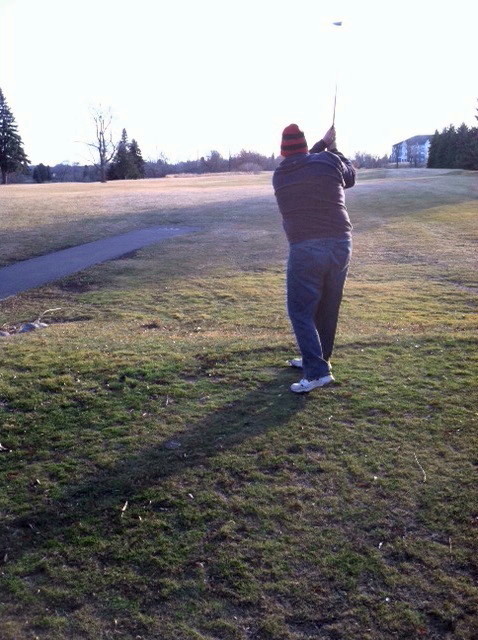 [Since I believe this to be the only golf story in the line-up, it seems an appropriate place to post this photo of Al Grundei, Class of ’67, Super Fan and blog contributor, golfing in Minnesota on December 26, 2011.]