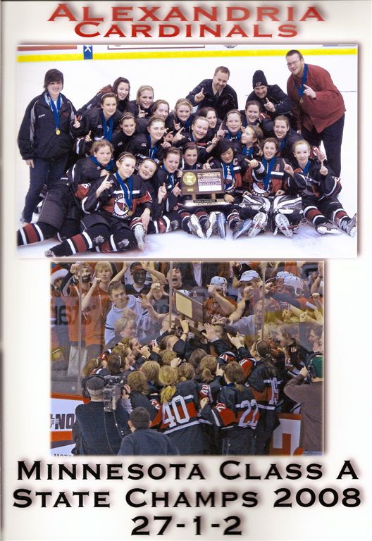 [January 23, 2008] In the penultimate home game of the regular season, the Alexandria Cardinals held off the Willmar Cardinals by the score of . . . 12 – 1! The only suspense was in seeing if Roadblock could get another shutout, but Willmar, to their credit, kept playing hard and managed to score with about 4 minutes left in the game. The third period was played on running time, and I’m not sure if the first line even played at all in that period. The Cards (Alex, that is) moved their record to 17-1-2 for the season. Tonight’s scoring challenges the 60+ year old mind of the Cub Reporter (even with the able assistance of the indomitable Ruthie): We believe Abby Williams had 4 goals, Nikki Ecklund and Michelle Anez had 2 goals each, Kat DelZoppo, Breanna Lind, Ally Nielsen had goals, and 7th-grader Shanee’ Herd had her first ever goal – but that’s a lot of remembering and we wouldn’t swear to it.