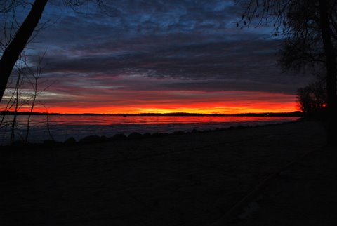 [From the Fieldhammers – sunset over Lake Darling just last night, 12-27-11.]
