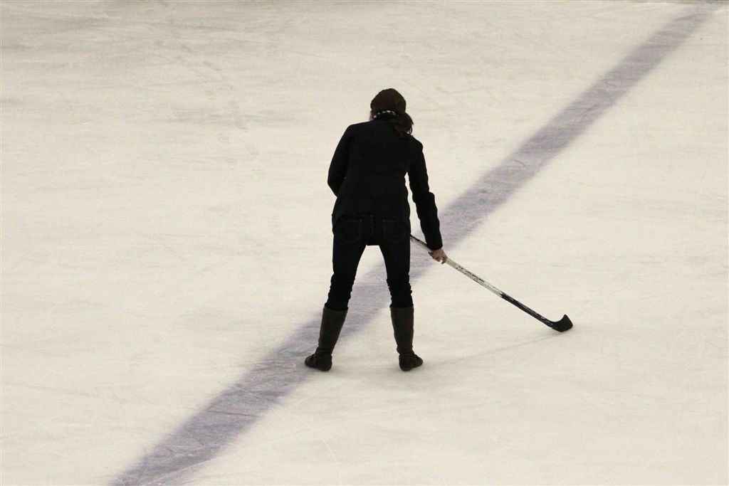 [Alia’s dad, Dan, on the Puck Shoot – came close!]
