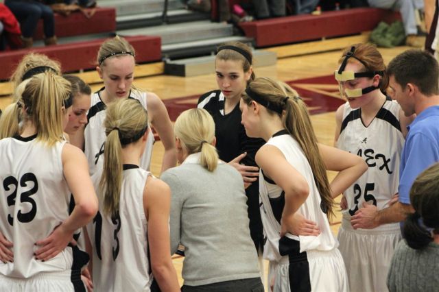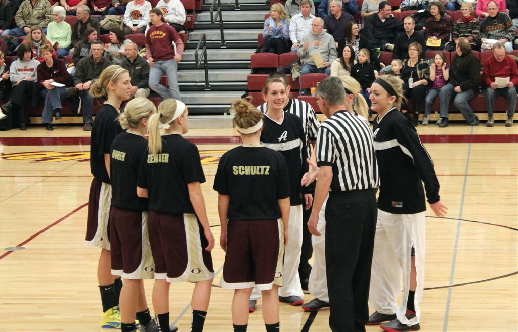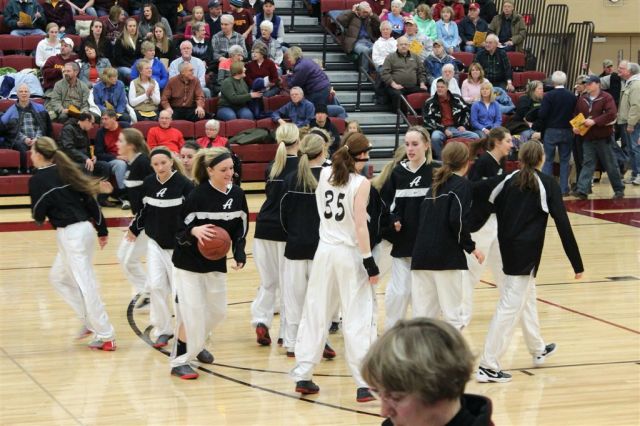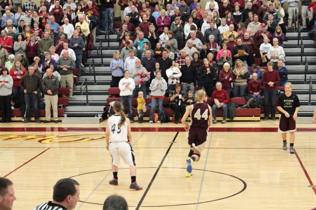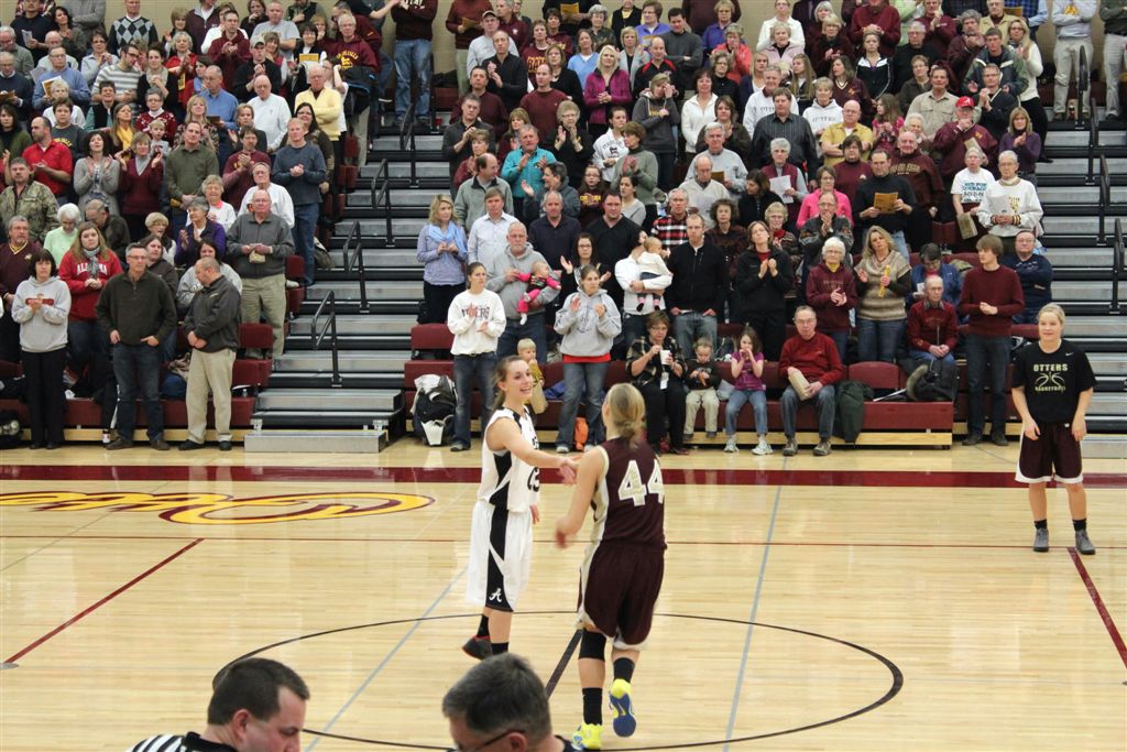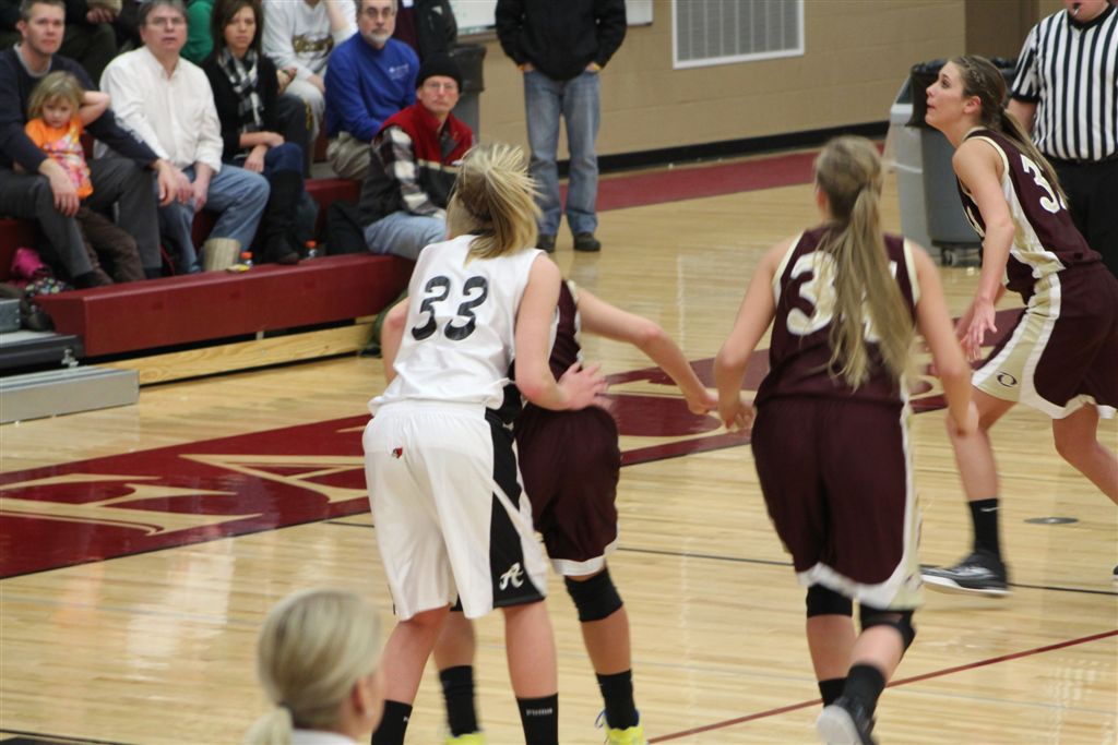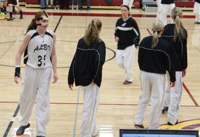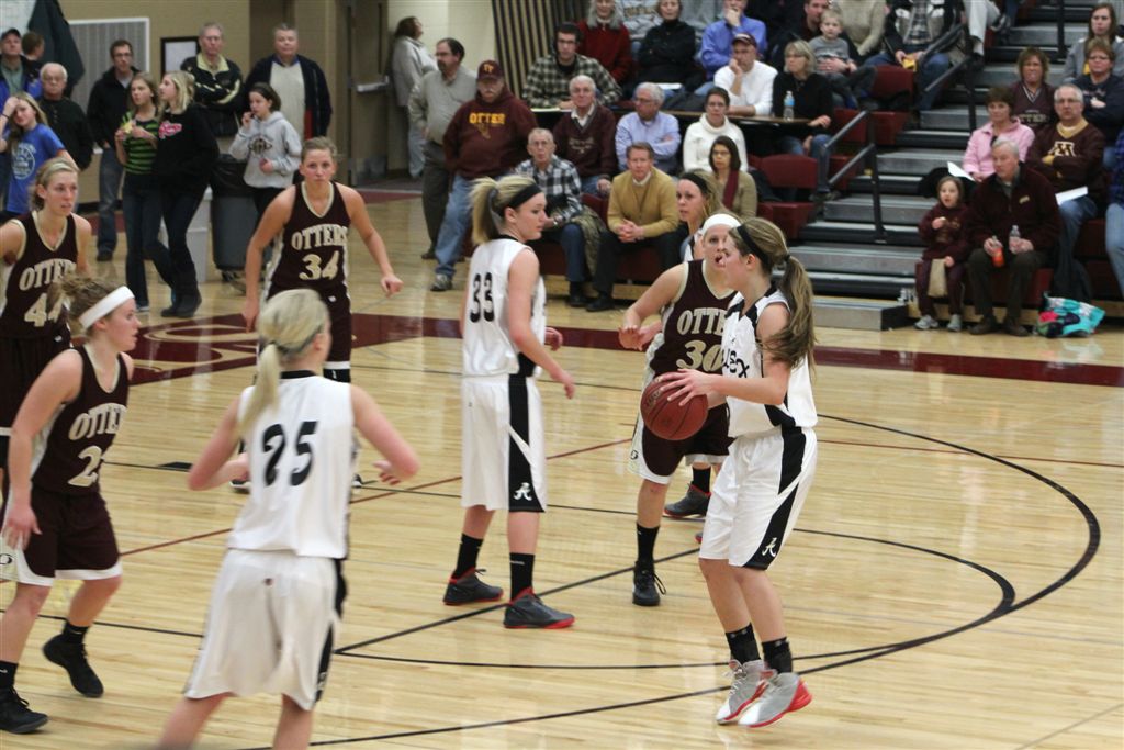 I never had a good feeling about this game. The Otters had everything going for them. Particularly, the revenge factor. This is the same team we beat for the section championship last year. And when Alex came out for warm-ups, Kalli was not only wearing her face mask, but also a brace on her shooting hand – not a good sign. Kalli scored 4 of our first 6 points, but she really wasn’t able to play much.