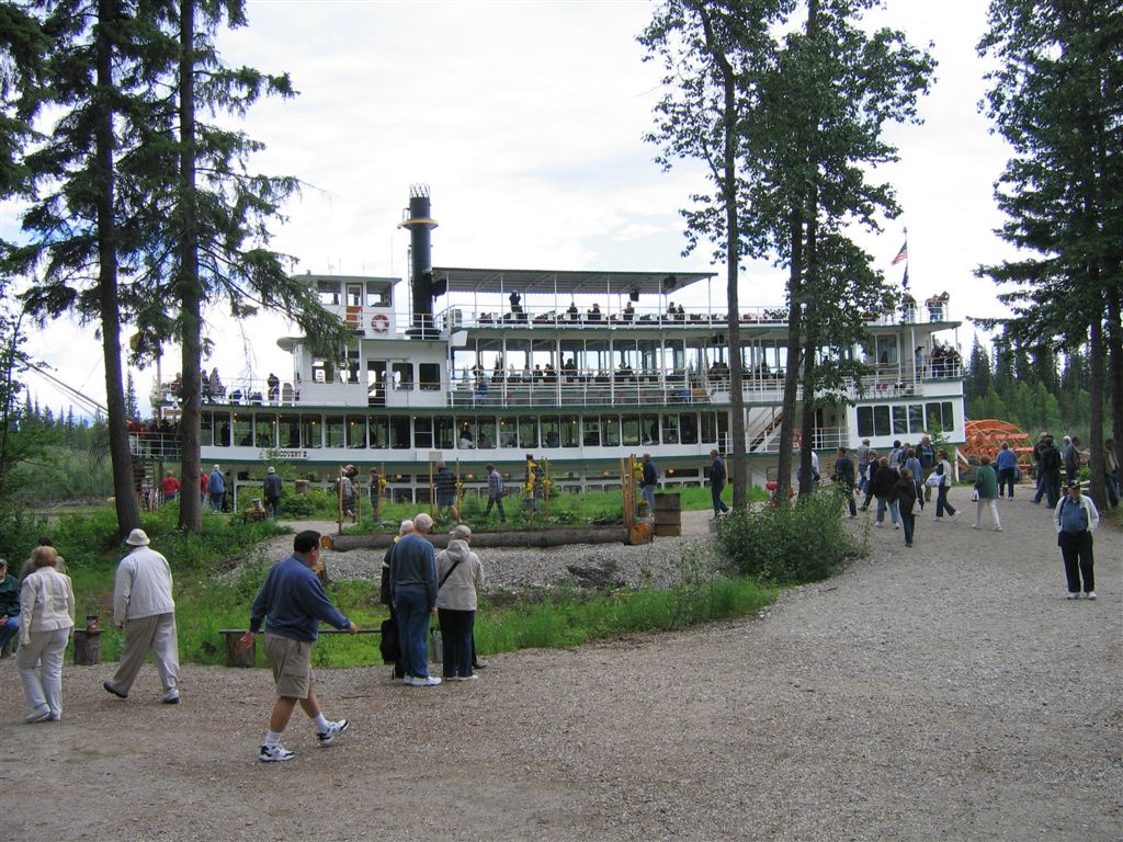 June 19, 2008, the first full day on the ground as we began our inland portion of the Alaska cruise. Everything in this post will be from June 19. From the Fairbanks Princess Lodge we began with a tour on riverboat, Discovery, with a day’s end destination of the Denali Princess Lodge.