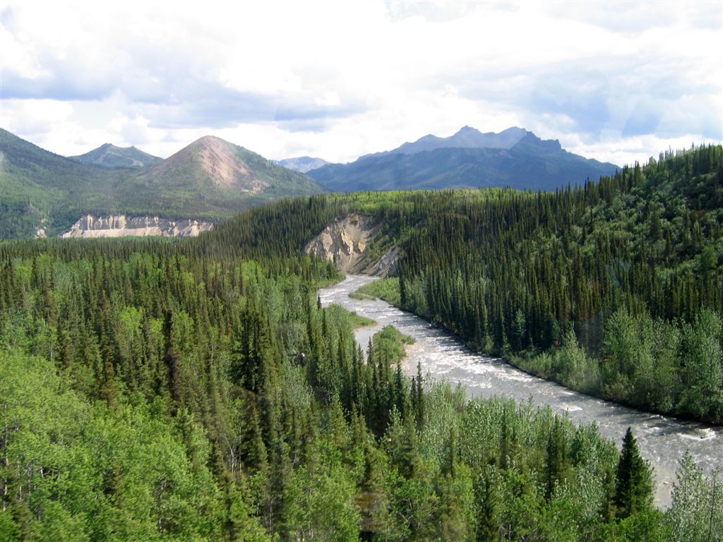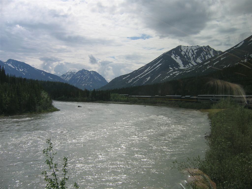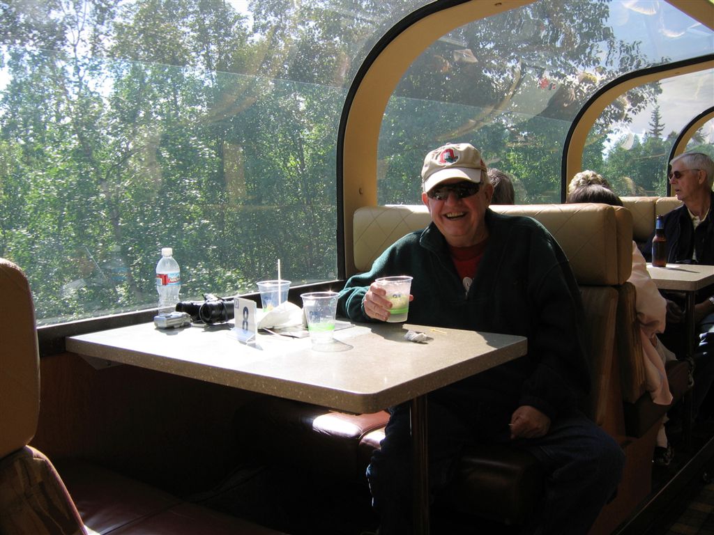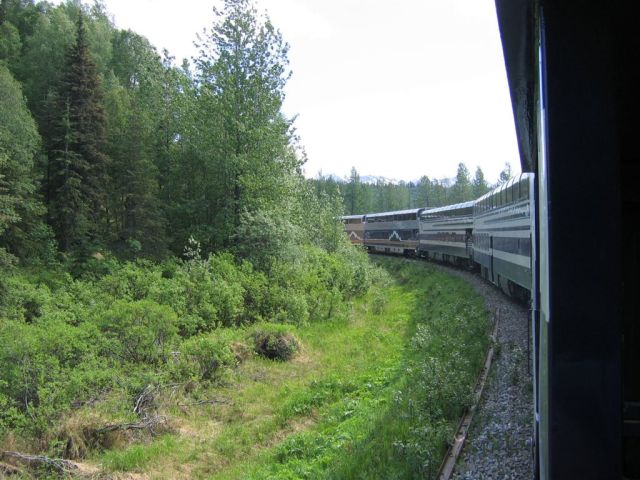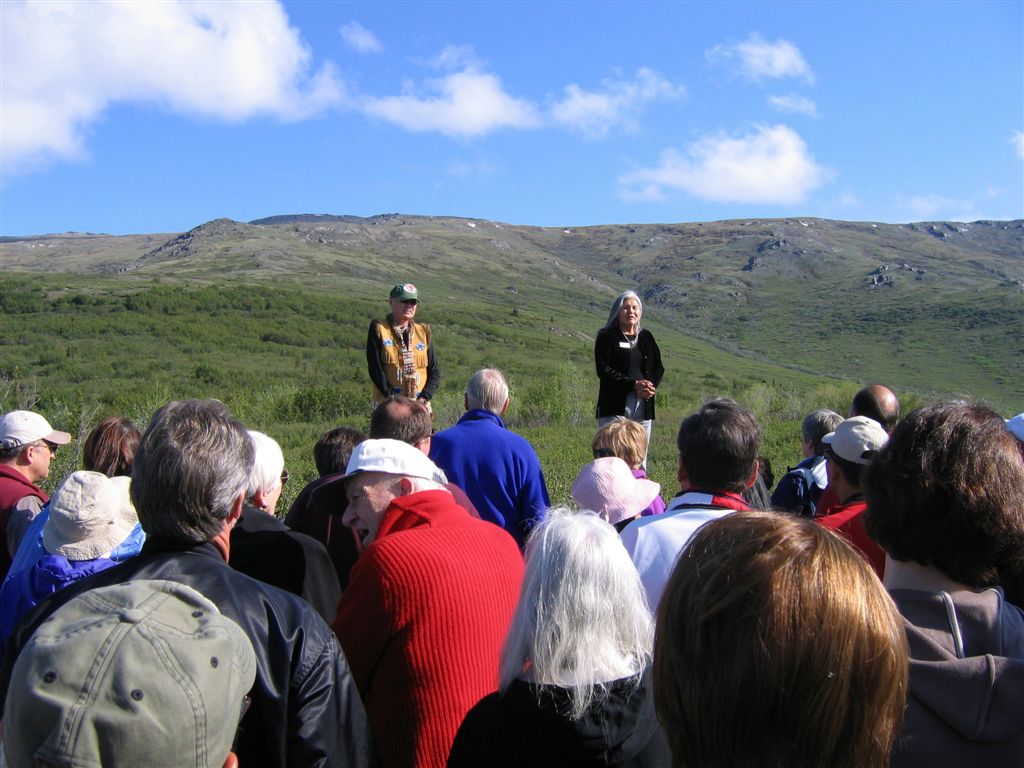 Our first sighting of Mt. McKinley, a/k/a, Denali. We are told how fortunate we are to be able to see the mountain – it, we are told, is usually swaddled in fog or clouds. (I was similarly advised of such “luckiness” at Fujiyama and the Matterhorn!) We countered by telling our tour guides how fortunate they were to have us as tourists! Ta-da!