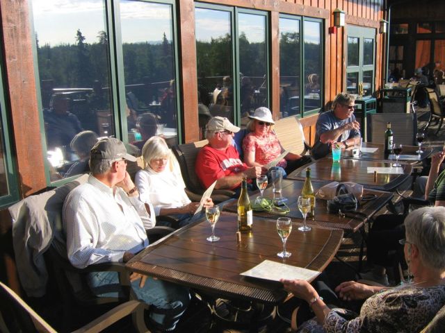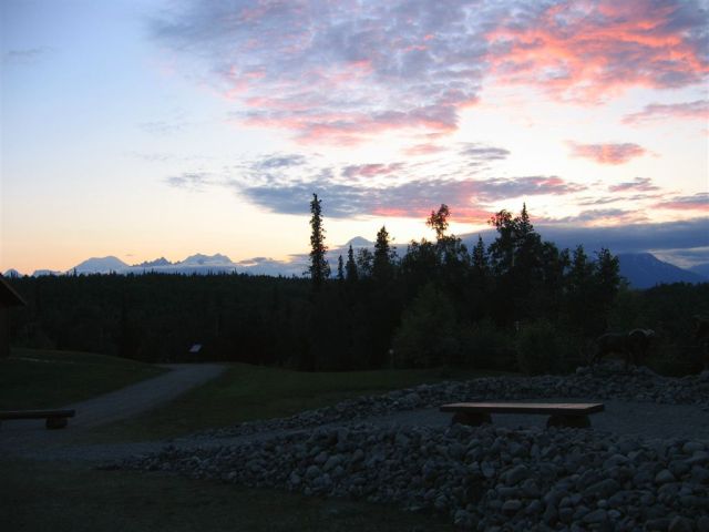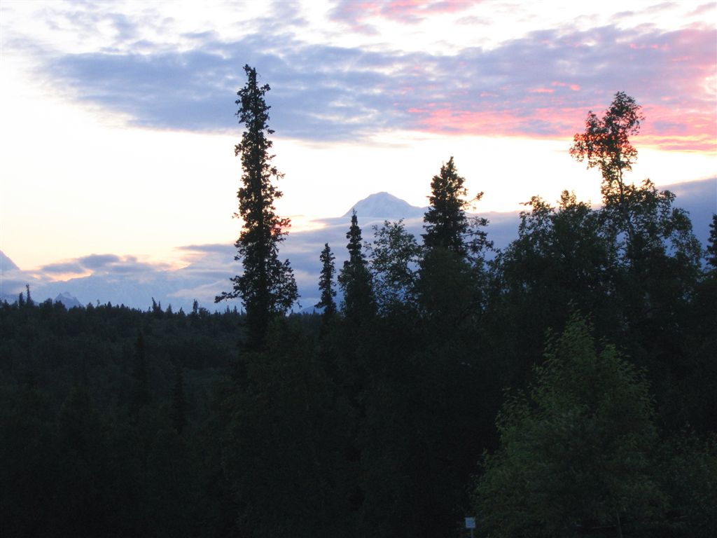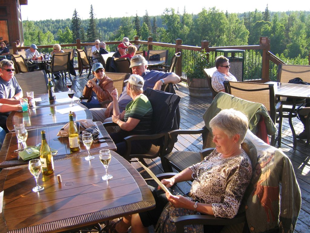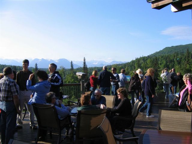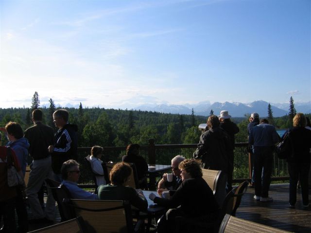 June 21, 2008. From McKinley to the Big Boat. Upon arrival at the lodge, all hands head for the deck to while away the evening ogling the mountain.