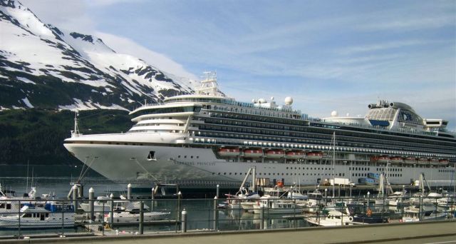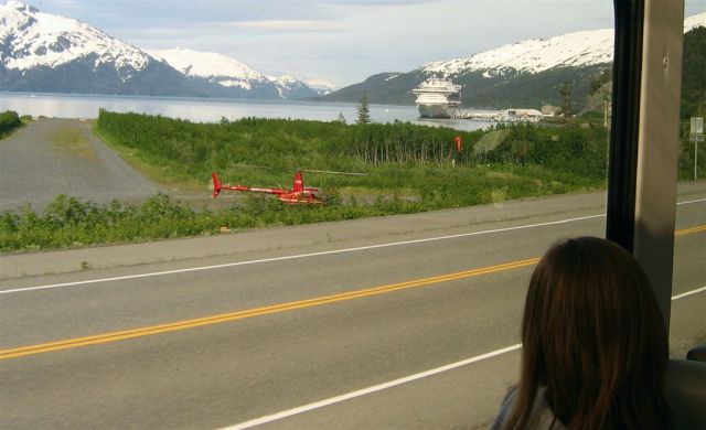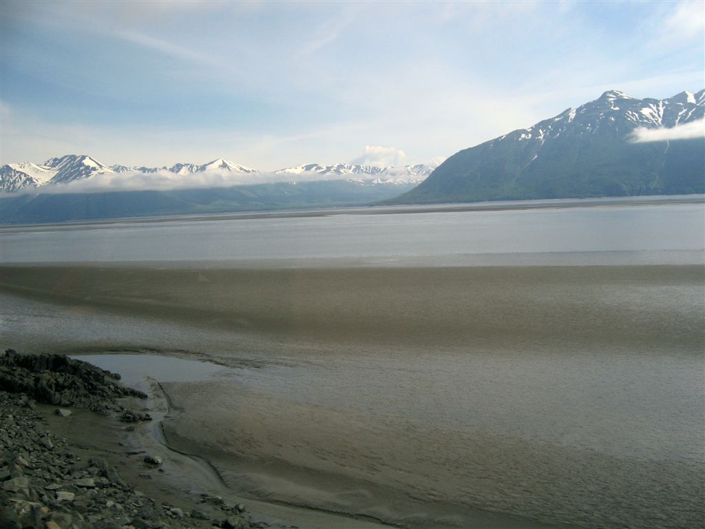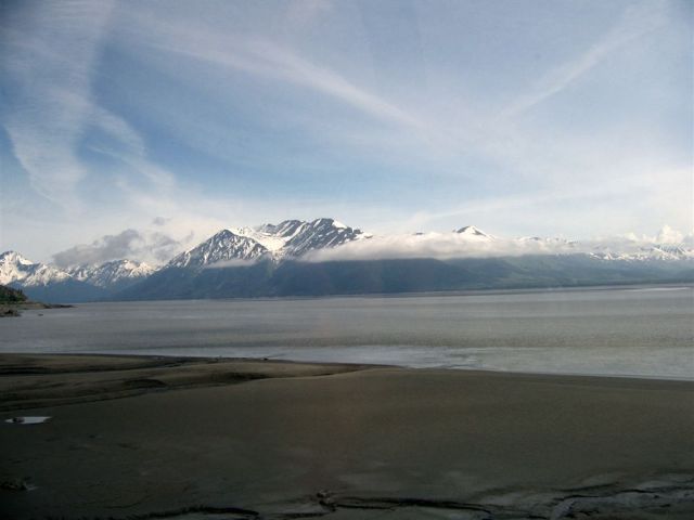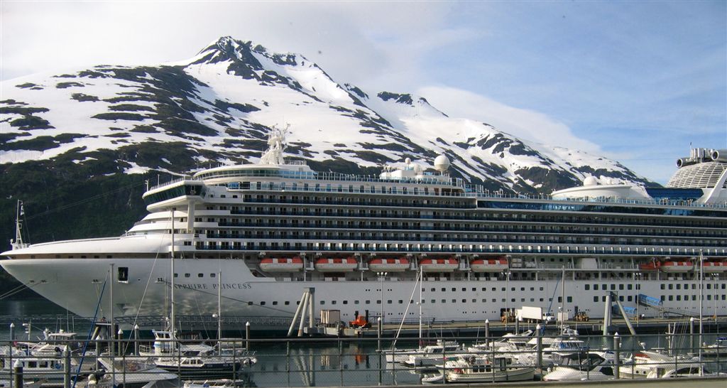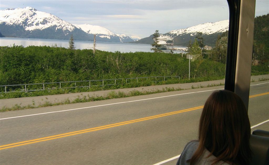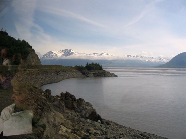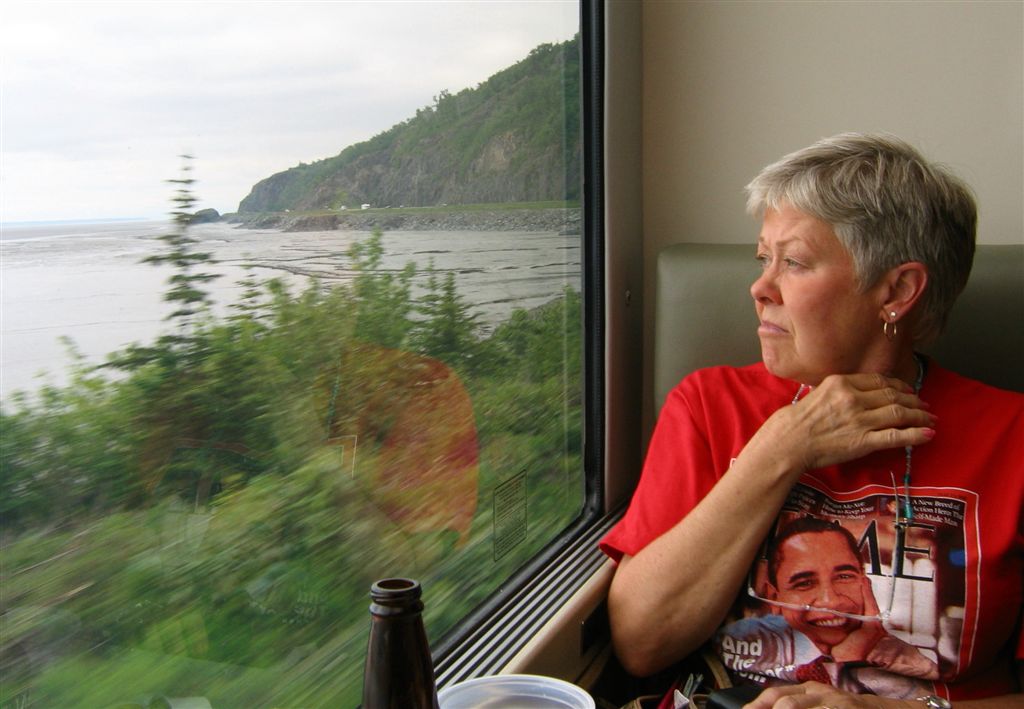 [Then it was a 5-hour rail trip, through the now famous Wasilla, through Anchorage, along Cook Inlet, to Whittier where we found our boat.]