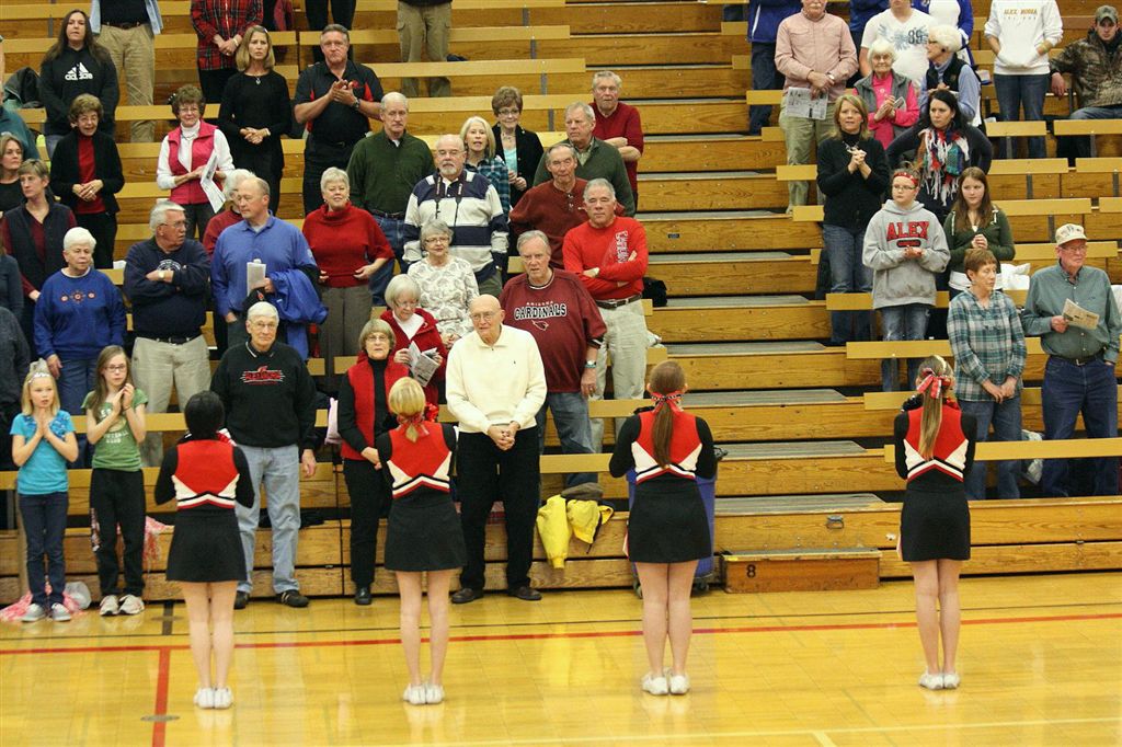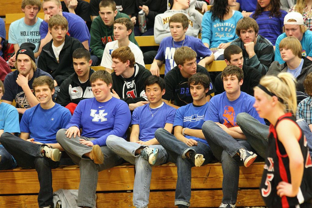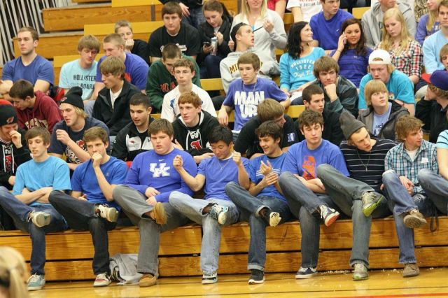 [The Brainerd game is about to begin. The Super Fans are standing just to prove they can do so.]