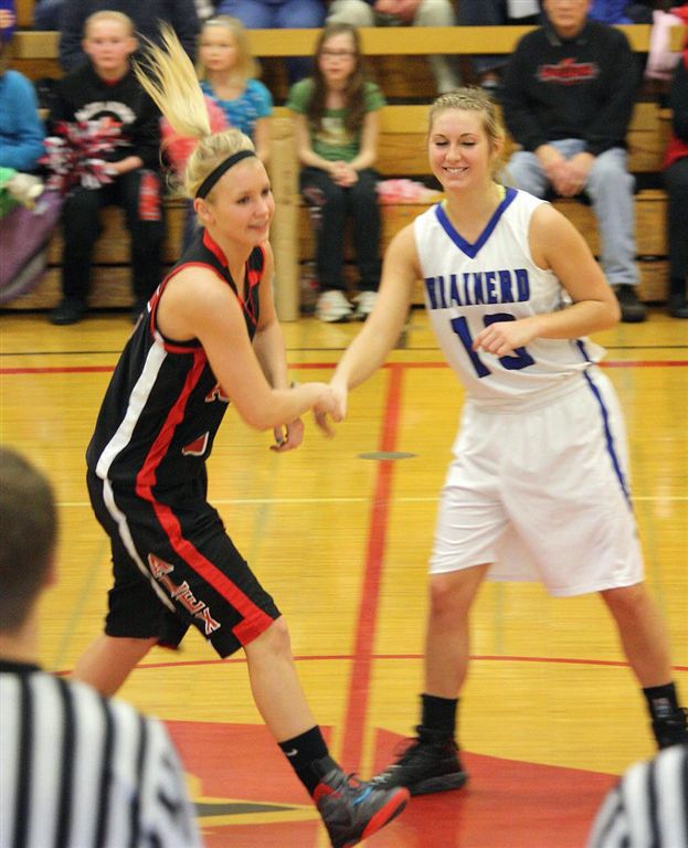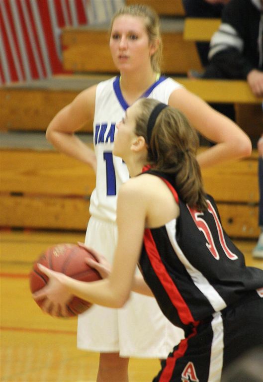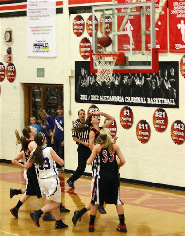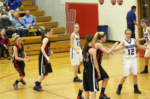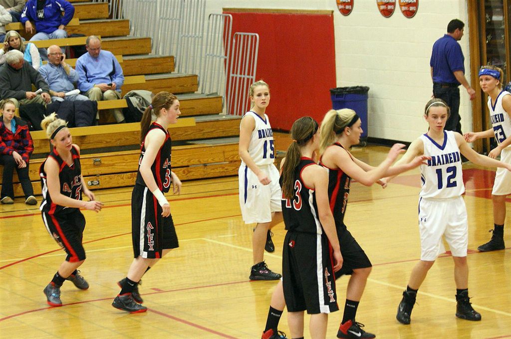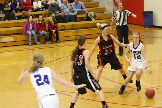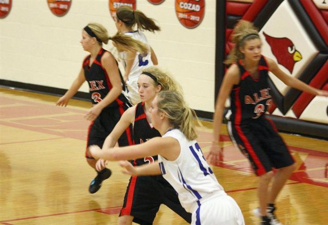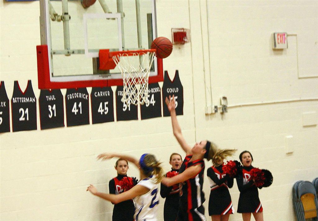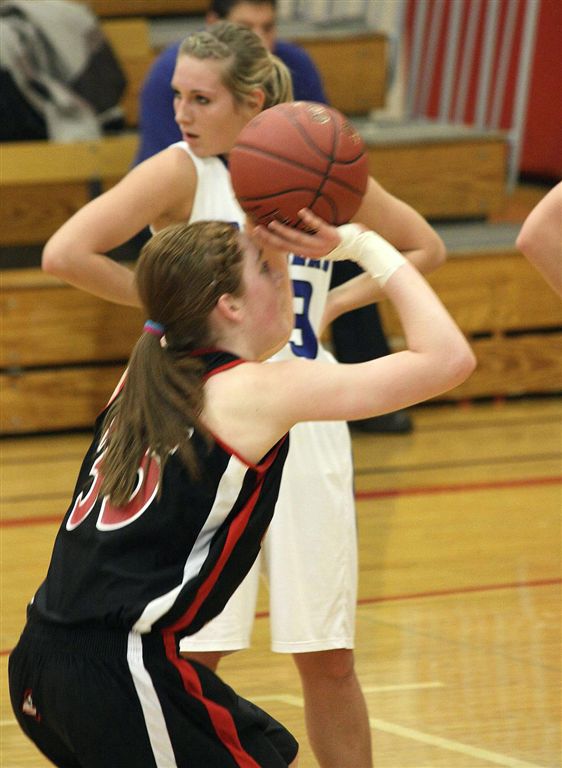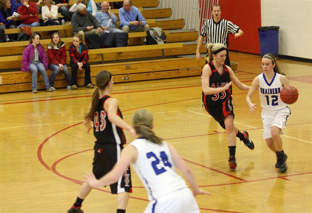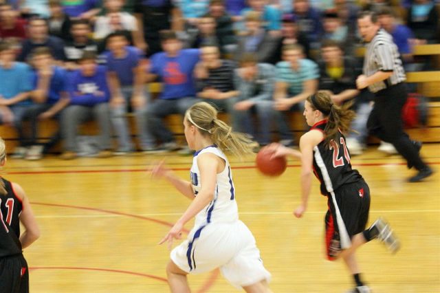 [For the first time in a while, we employed a full-court press for most of the game. 6’1″ Whitney played the point a’la Alli Haar from last year. The pressure created about a gazillion turnovers.]