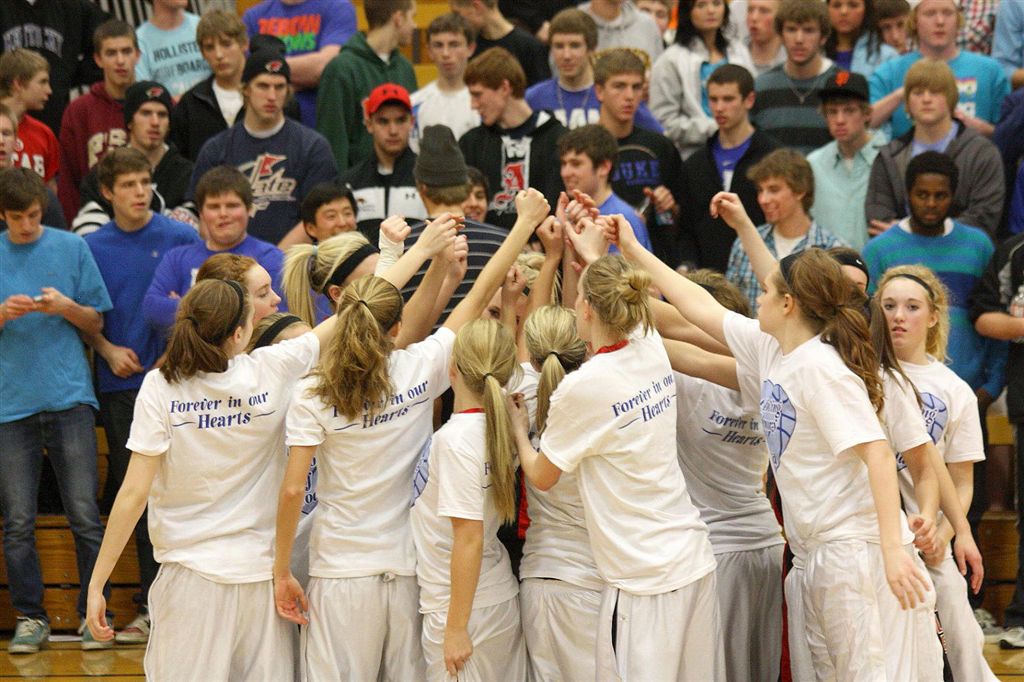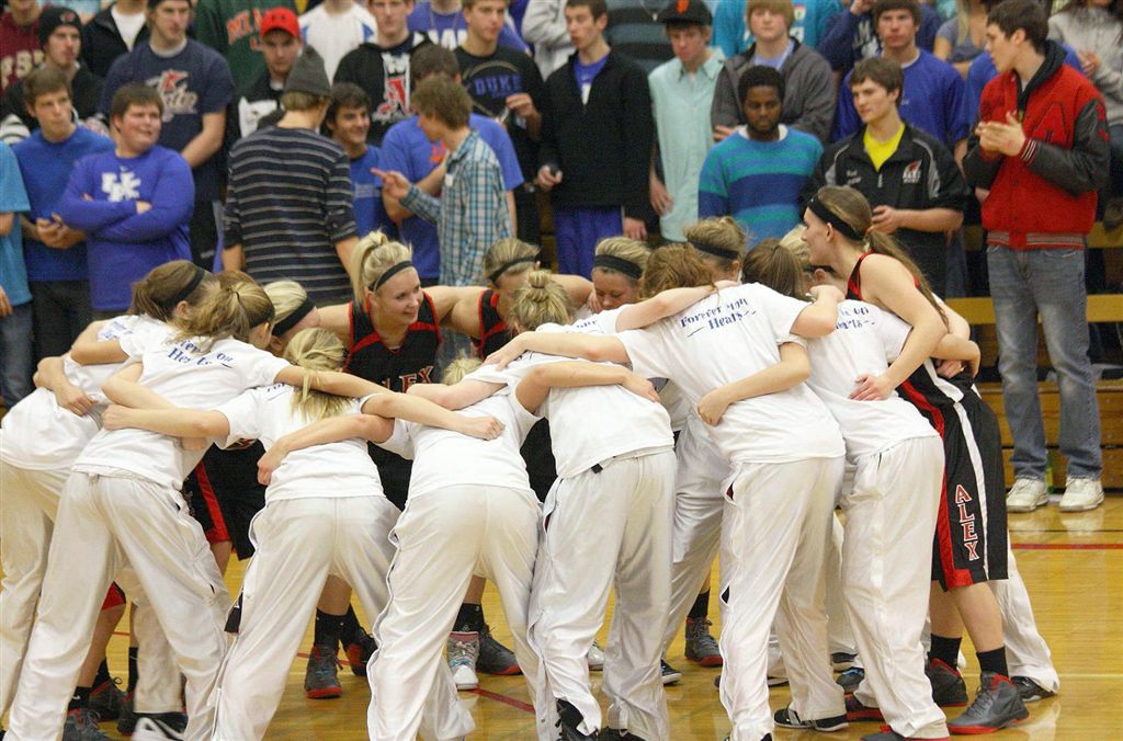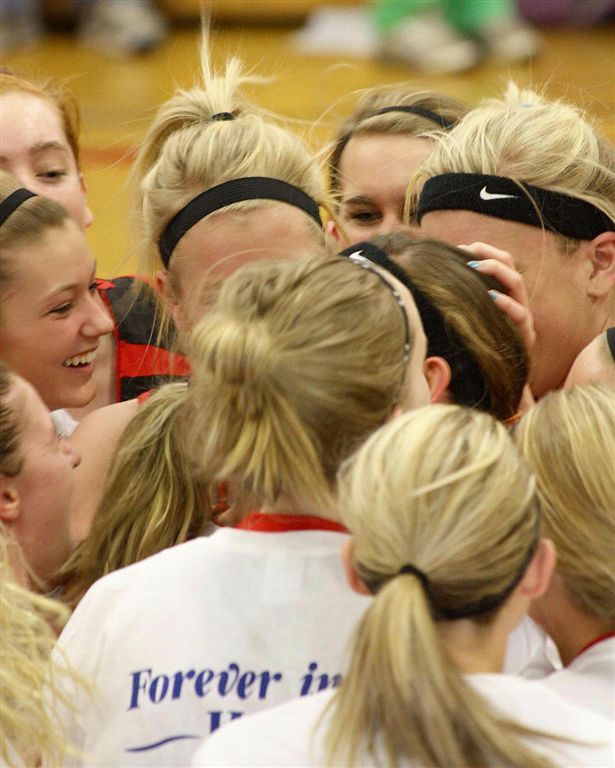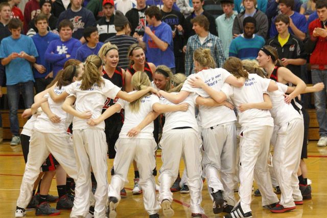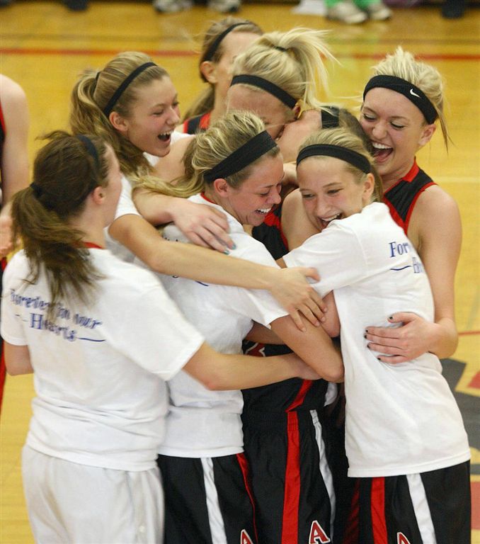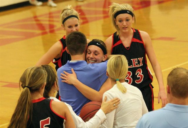 [One of the rare exceptions where hugging is permitted on a basketball court.]