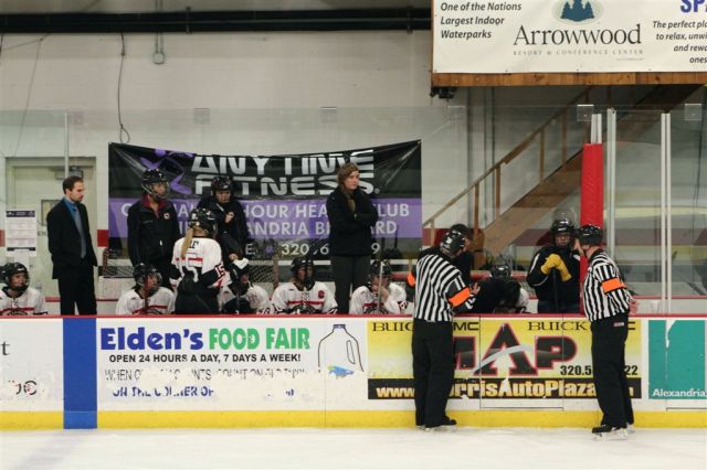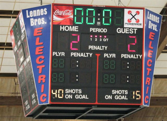 The girls’ hockey team had their first home game in a while. Last night we hosted the North Lakes (a/k/a, Pequot Lakes, et al) Lightning. I think the pre-game consensus was this would be an easy game. Well, it didn’t quite turn out that way. As noted on the scoreboard, the game ended in a 2 – 2 tie, in overtime, though we outshot them 40 – 15. When I got home I had to check Pequot’s record – they were a not so bad 5 – 9, but they were in every game. The reason – they have an excellent freshman goalie who will keep them in games for the next three years. She prevented us from scoring on breakaways and point blank shots. Like a dominant pitcher in softball, a dominant goalie can control a game.