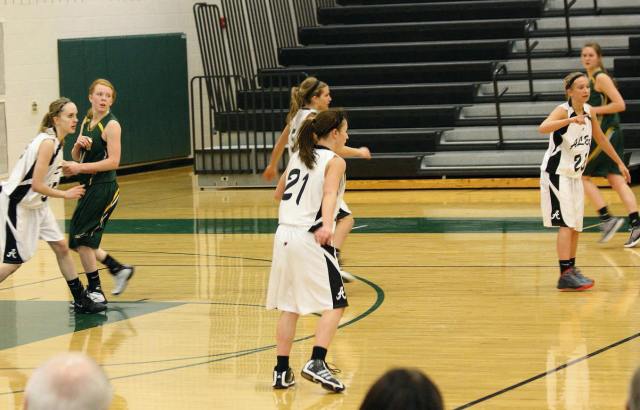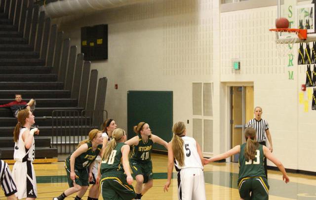 Also last night, the season-long battered and bruised boys’ hockey team lost 4 – 0 at Little Falls. A stringer was present at the boys’ basketball game against a 17 – 3 Little Falls team and reported our Cards played their best game he has seen them play this year in winning 73 – 62. And just when I thought I potentially had a complete posting for the day, the staff photographer uploaded his photos from the girls’ basketball game at Sauk Rapids last night. So, here, in living color, they are: