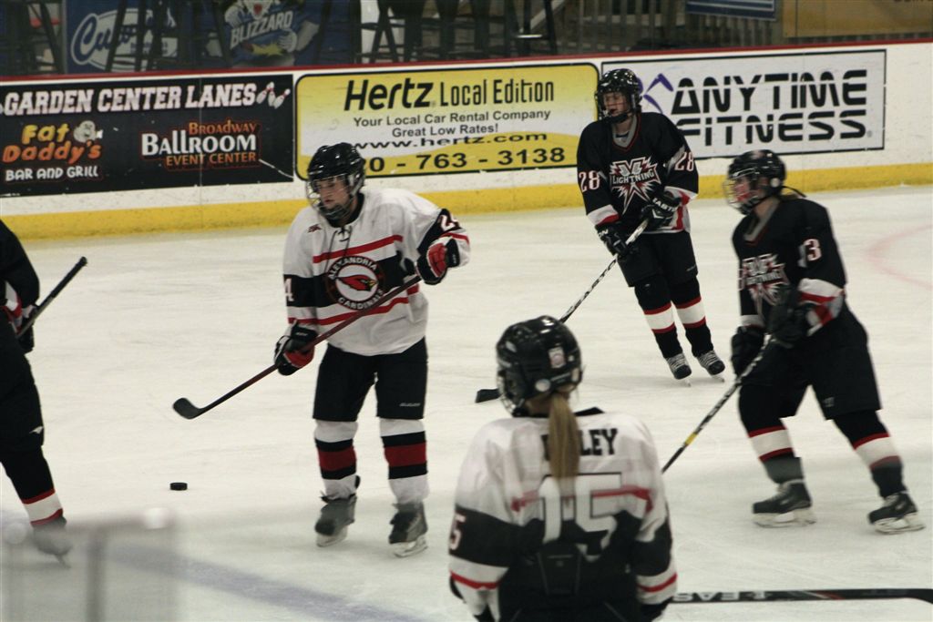 Melissa Drown scored to give us a 2 – 1 lead going into the 3rd period. But for some reason, we came out really flat in the final period. The Lightning scored early to tie the game and generally out-played us the entire period. The Cards took total control of the overtime, but we couldn’t dent the net.