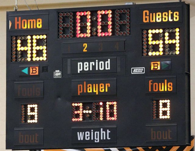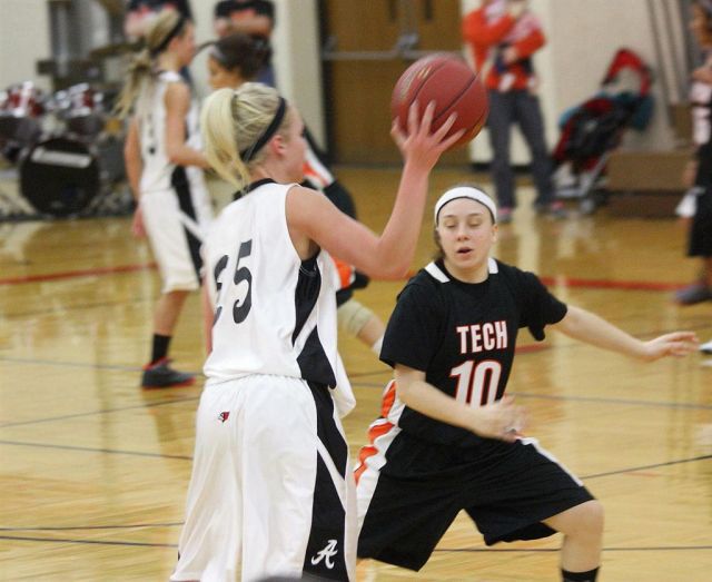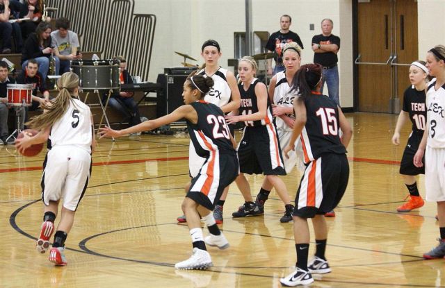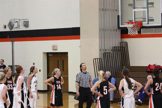 Last Friday night. The 2nd of a six-game road trip for our Cards. This figured to be a tough game – Tech is in 3rd place in conference, has beaten Sartell and came with 6 points of No. 1-ranked Fergus Falls both times they played. The Cards played probably our best game of the year in beating Tech at home by 19 points. LT scored the first 6 points of this game and the Cards had an 8 – 0 lead before the Tigers finally scored about 5 minutes in.