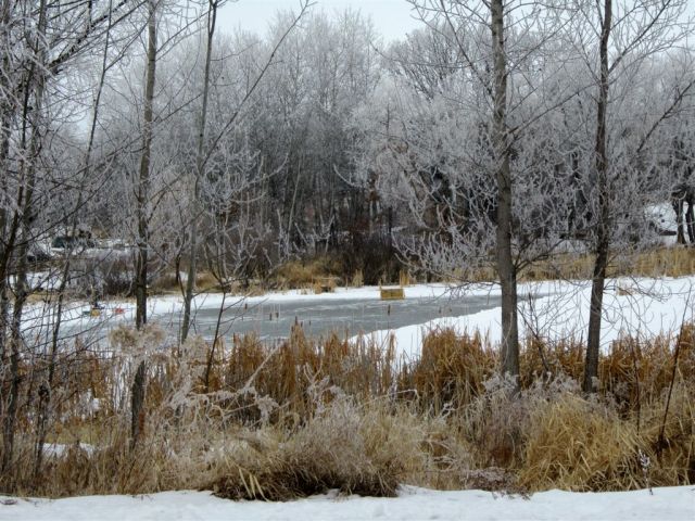 [Minnesota landmark – hand-shoveled pond hockey rink.]