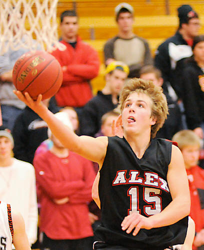 [John Vogeler, 6’2″ sophomore, scored 27 v. Little Falls. (Echo photo).]