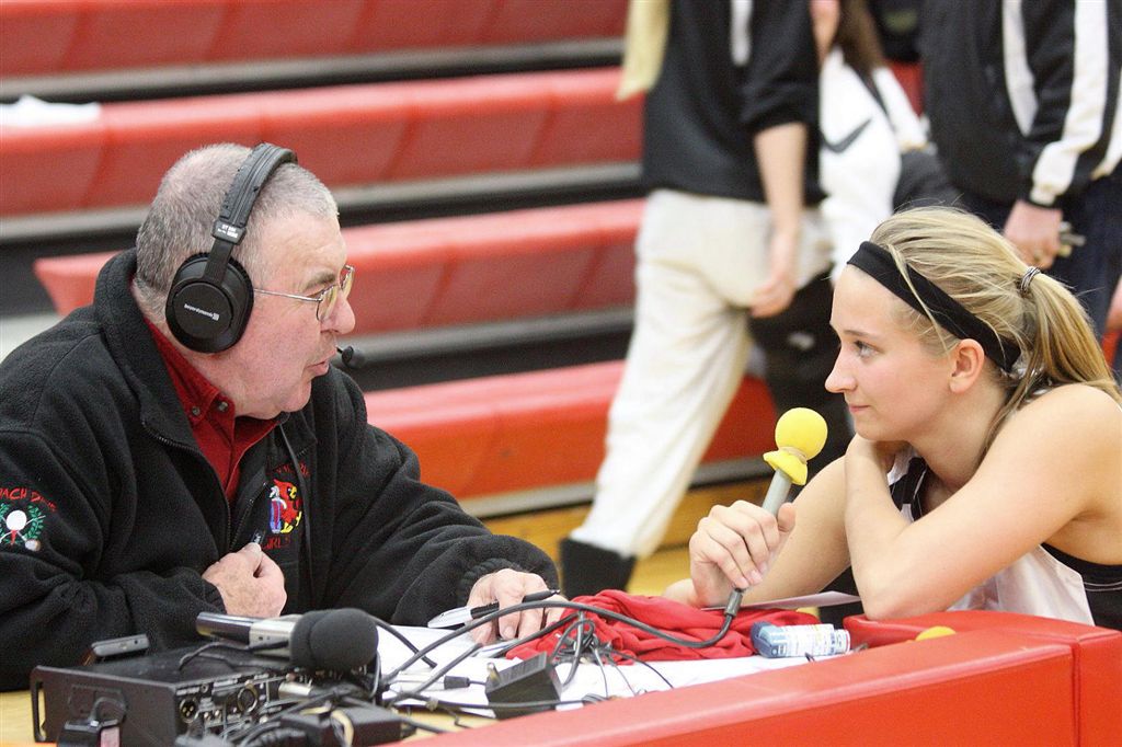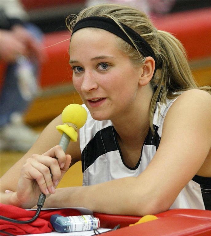 [Coach Engebretson has a little “radio” fun with her.]
