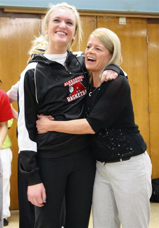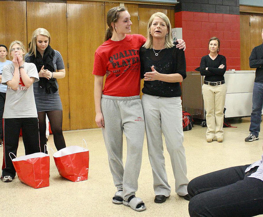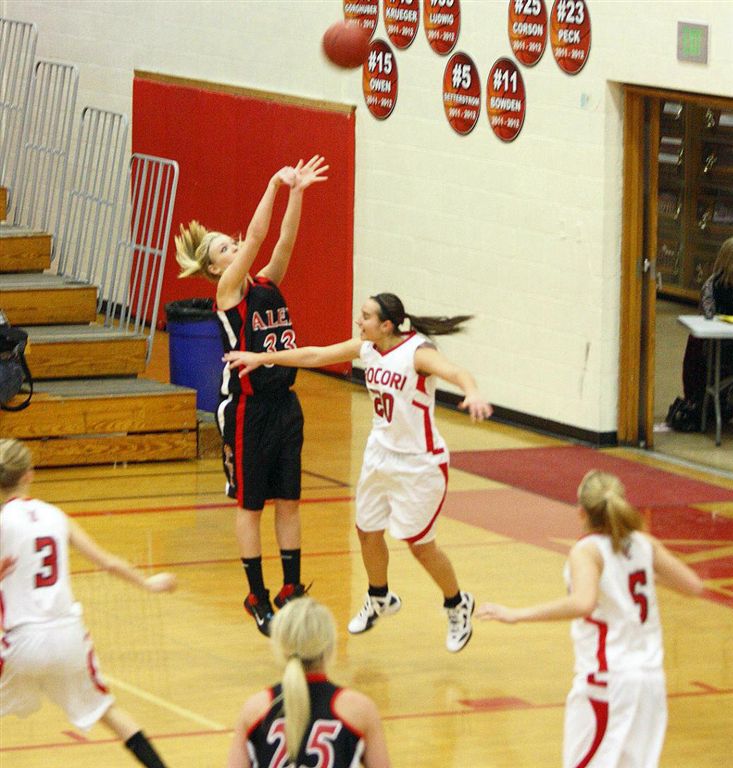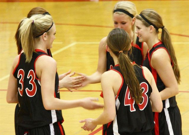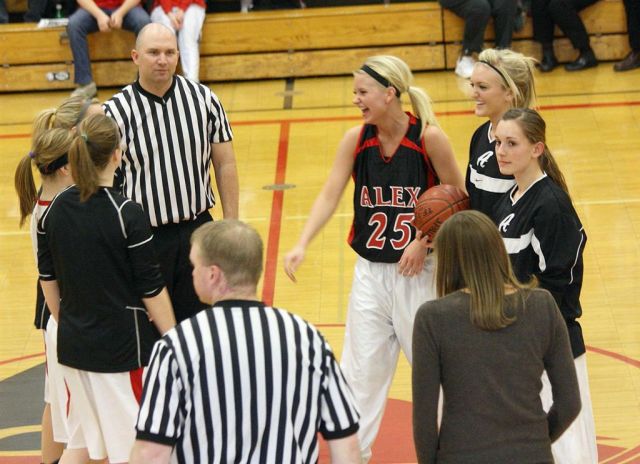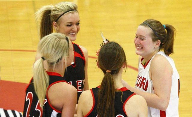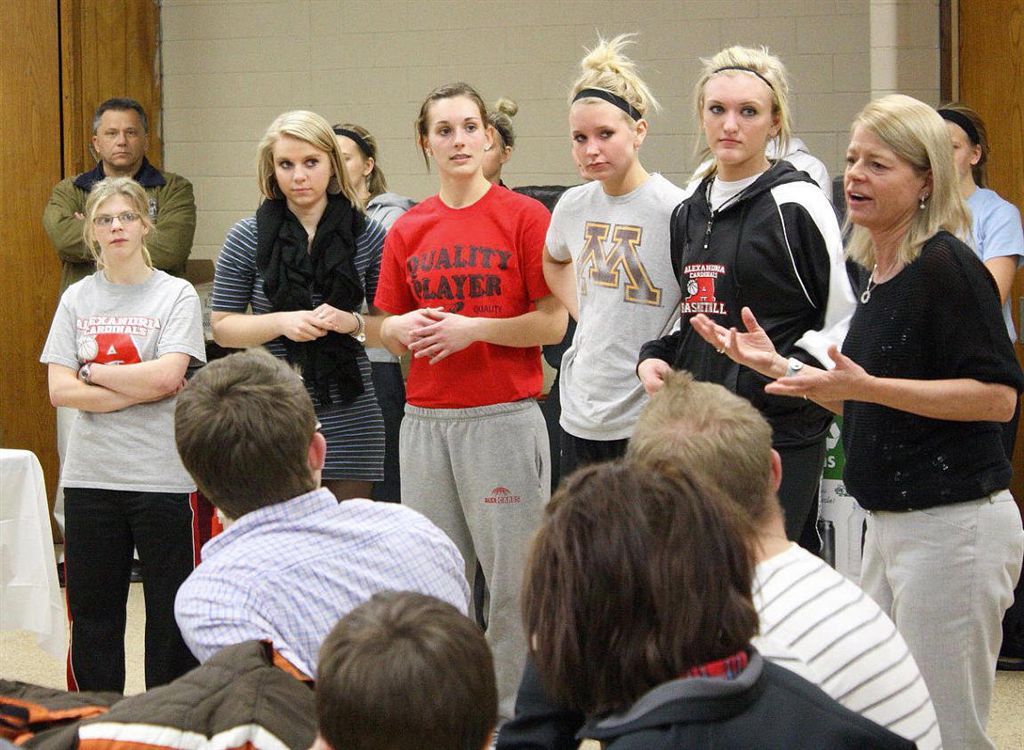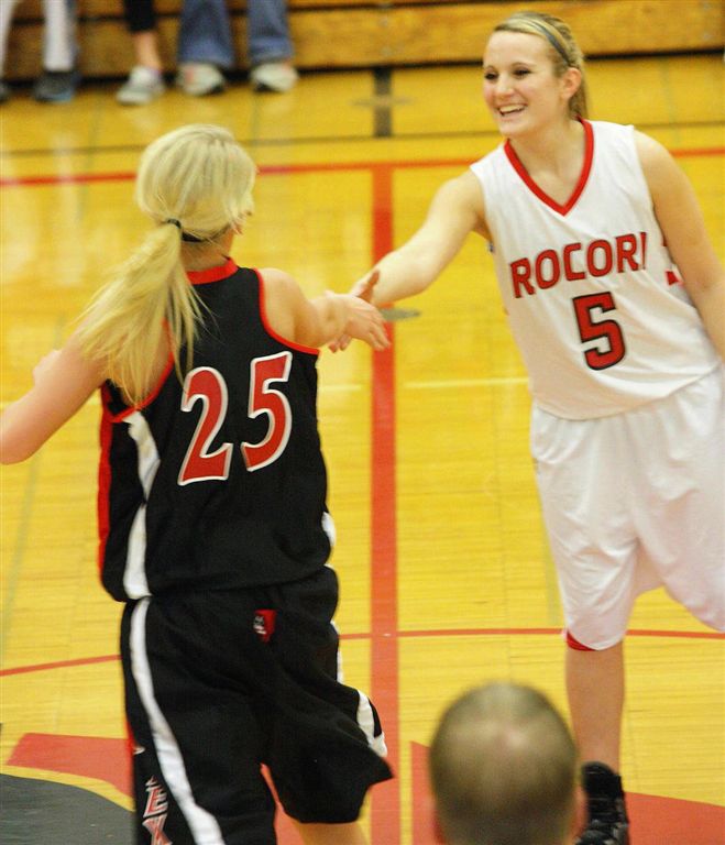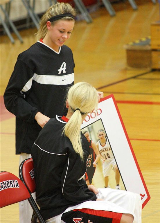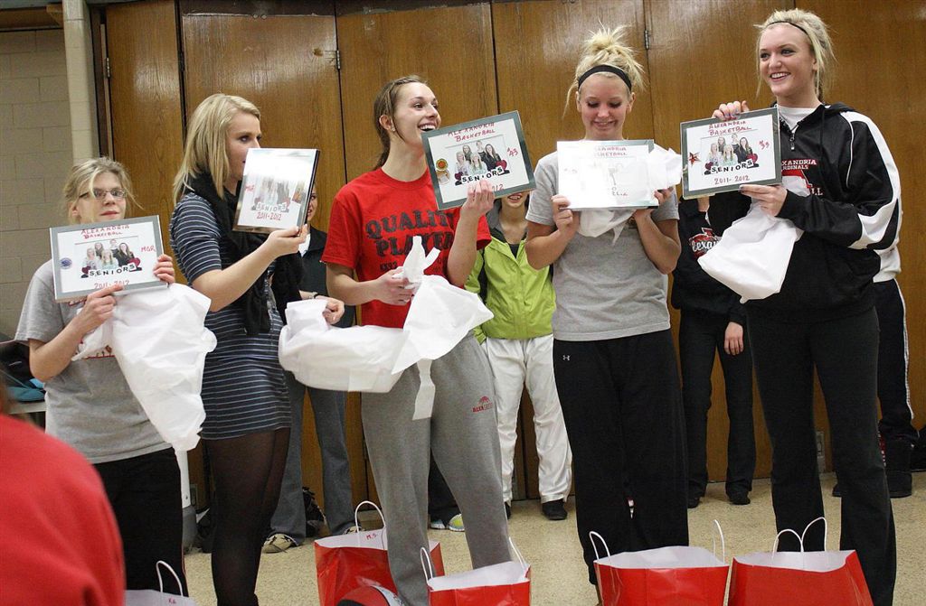 Meanwhile, back at the high school (oh yeah, I said that already). Senior night for the girl roundballers took place on the same night we repaired to St. Cloud for the girls’ hockey section finals. Fortunately, I knew the staff photographer was there to “cover” events at JHS. Had he not, I would have been in a real dither! [a dither, by the way, is a mythical place just on the leeward side of a cappella (see further references below).] If I had been asked to choose, I would have said it was the moral equivalent of asking which child do I like best? Well, that’s not valid since I don’t have children. It would have been like asking which cat do I like best? But we don’t have cats anymore. I guess I just don’t have a good metaphor? [a metaphor, incidentally, is also a mythical place, but in a totally different province from a dither and a cappella.] Now aren’t you glad you have someone who will provide all this useless information free of charge? Oh, we played Rocori.