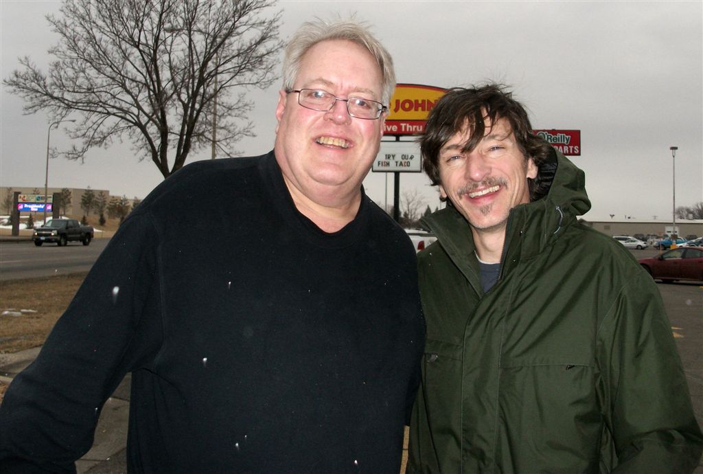 John Hawkes (r) was in town yesterday – as a native, he knew enough to leave just before the snowstorm hit. As you’ll recall, he was nominated for an Oscar last year – and this year he won an acting award at the Sundance Film Festival. He is standing next to Bryan Stoeck, an Alex 1977 classmate. Bryan’s dad, Boris, used to deliver fuel oil to our house back in the days we lived in Victoria Heights. The photo is courtesy of Tom Anderson. Tom was also Alex class of 1977. Tom also bought my Mom’s house. See, it all connects eventually.